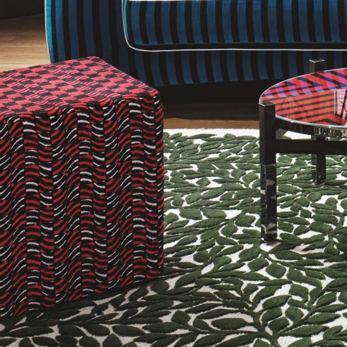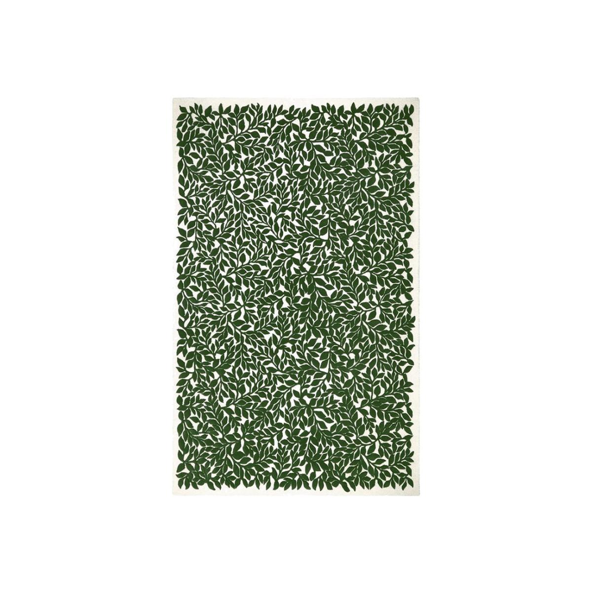 Bring the outdoors in with this Bosquet Roseau rug from Christian Lacroix. Crafted from 100% wool, this rug has been expertly hand tufted to create varying pile heights which accentuate the vibrant leaf print. Subtly shaded from mid to dark forest greens, it adds theatrical impact to any interior space and it is finished with 100% cotton backing.