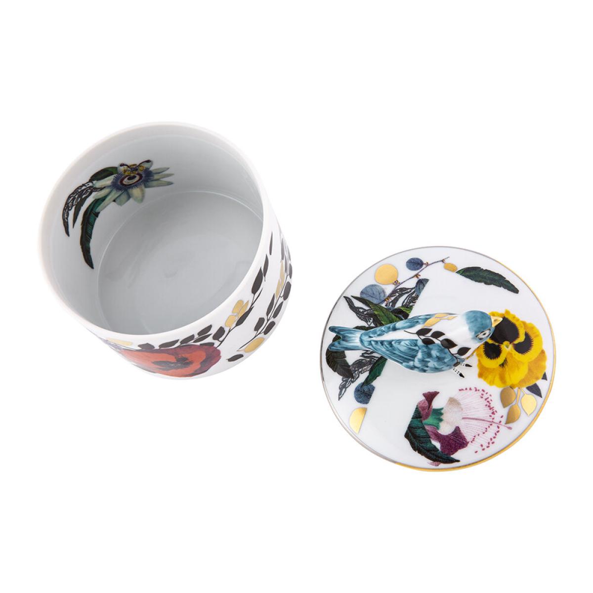 I love this little bird box for its playful yet sophisticated design, making it a charming addition to both classic and contemporary interiors. It works particularly well in eclectic schemes, where its vibrant floral pattern can complement colourful touches, or in more pared-back spaces as a statement piece. Practical styling tips include using it on a dressing table or bookshelf to organise jewellery, trinkets, or small keepsakes. Pair it with other Arte Povera or botanical-inspired accessories to create a cohesive look, and don’t be afraid to let it stand out as a colourful focal point in a neutral setting.