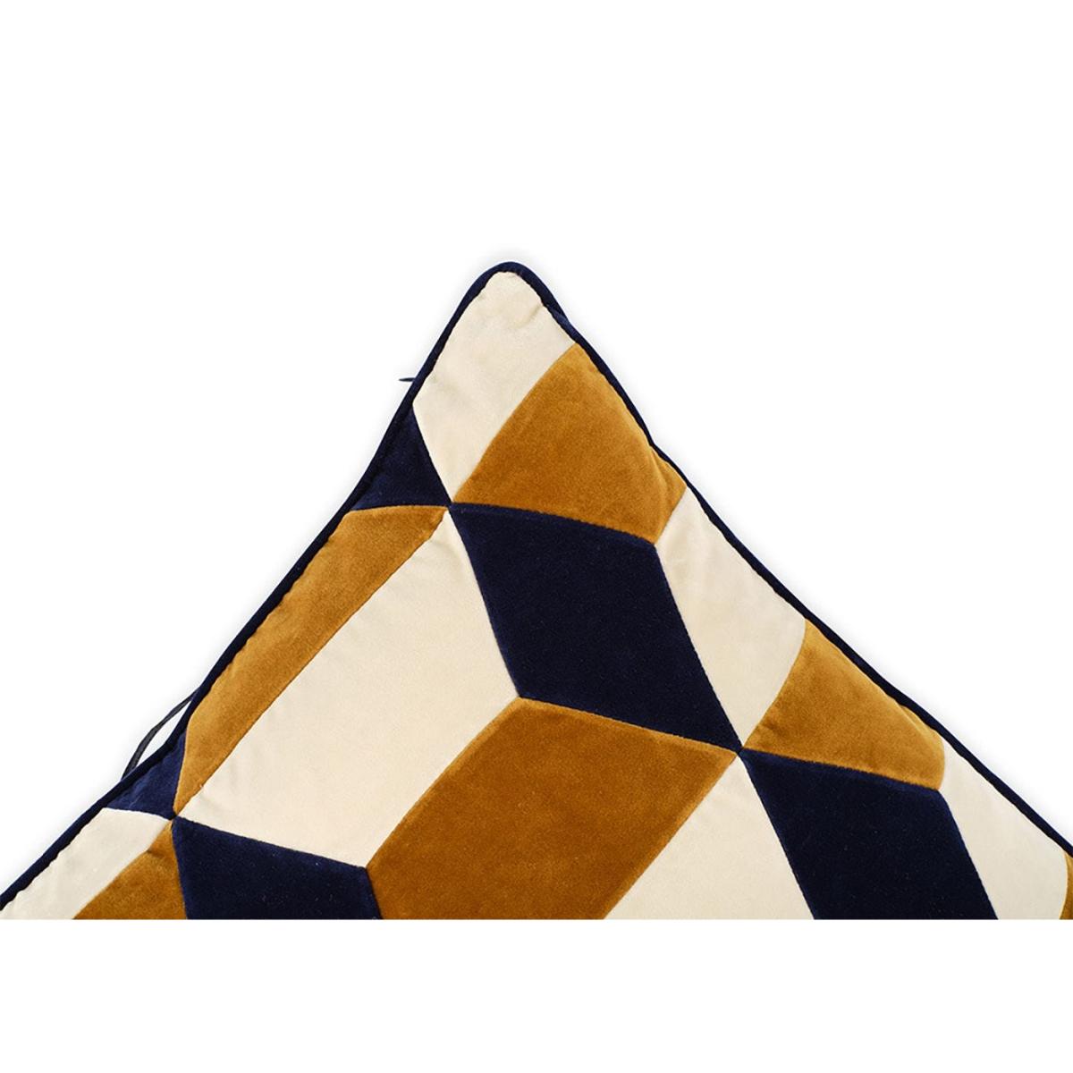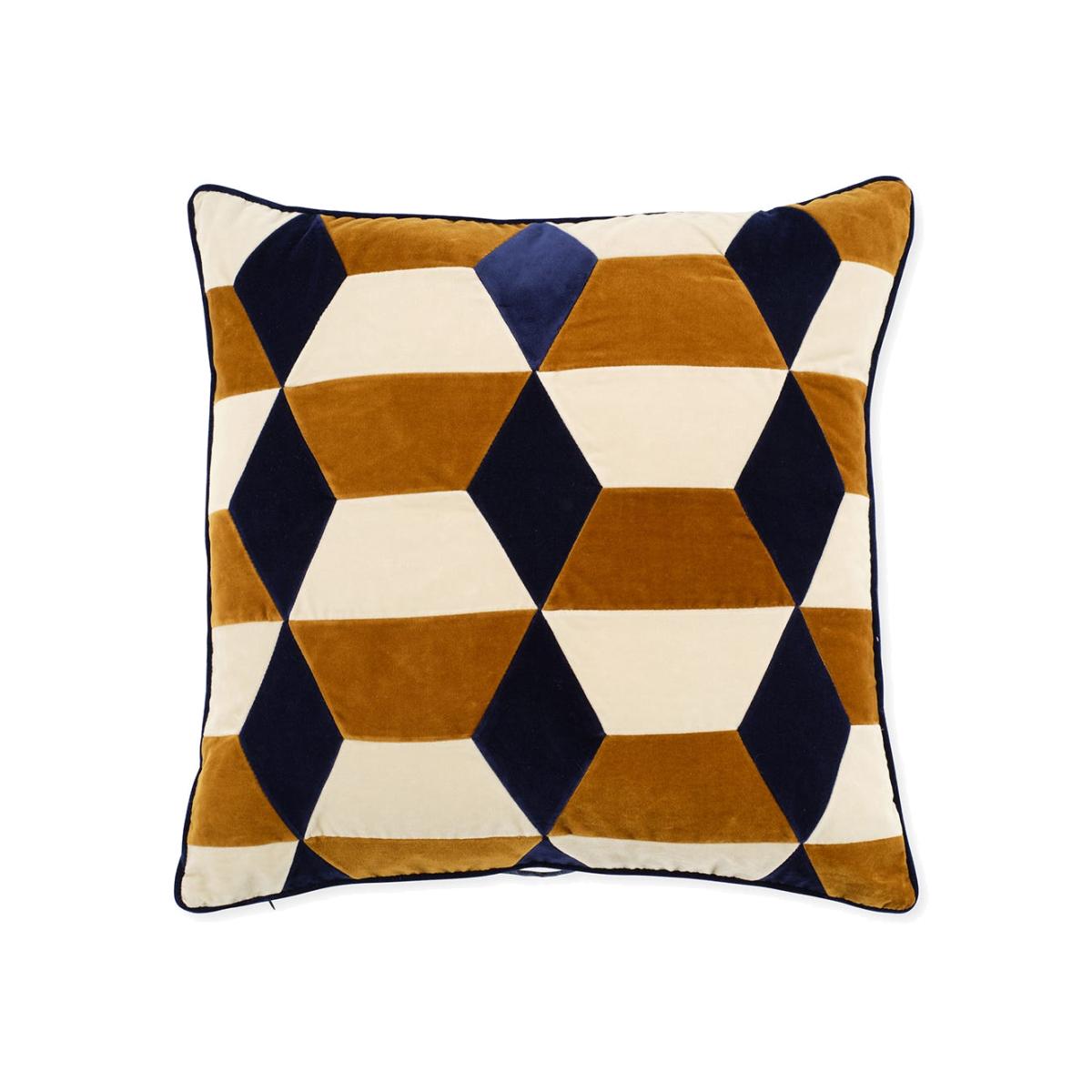 I love this cushion for its bold geometric pattern and rich colour palette, which makes it a versatile choice for both modern and retro-inspired interiors. It works particularly well on neutral sofas or armchairs, adding a splash of warmth and visual interest without overwhelming the space. Practical styling tips include layering it with simpler cushions for a curated look or using it as a statement piece in a minimalist setting. Its 55x55cm size makes it perfect for adding comfort and style to casual seating areas, and the velvety texture contributes a touch of luxe. Overall, a great way to introduce pattern and colour effortlessly.