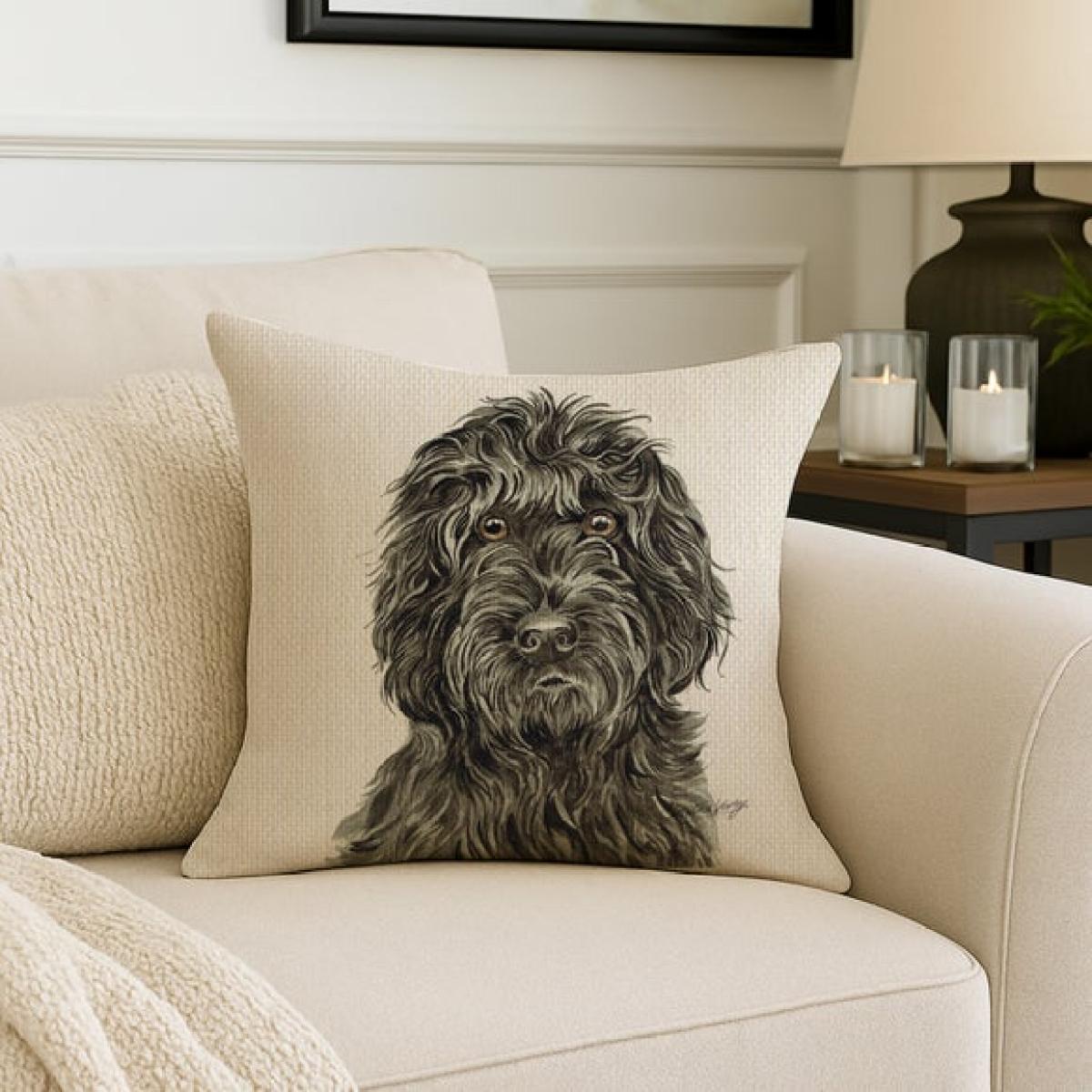 I love this cushion because it adds a playful and cosy touch to any sitting area. The black Cockapoo design offers a charming focal point that can work well in both neutral-toned minimalist spaces and more eclectic, fun interiors. It pairs beautifully with soft textiles and natural fibres, making it perfect for living rooms with a relaxed, inviting vibe. For styling tips, try pairing it with textured throws or layered cushions in complementary colours-think shades of grey, beige, or even pastel hues-to create a balanced look. It’s versatile enough to sit on sofas, armchairs, or even beds, adding personality without overwhelming the space.