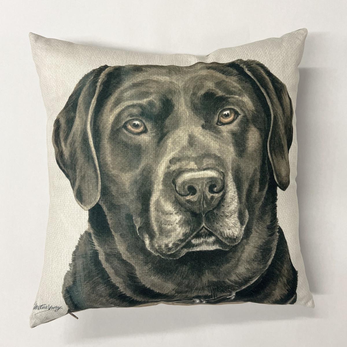 * Add a unique touch to your living space with this printed scatter cushion featuring:* Christine Varley Artist Illustrated Pet Portrait Imagery* 43cm Square Shaped Cushion* Edge to edge Print* Linen Feel - 100% Polyester Fabric* Contrast Back Panel* Luxurious recycled fabric fill* Zip fastened removable cover* Made in the UK This Chocolate Labrador Square Cushion enriches your living space with Christine Varley's heartwarming illustration of a Chocolate Labrador. Made from linen-feel polyester with a contrast back panel, this 43cm cushion includes luxurious recycled fabric filling and a zip-fastened removable cover, made in the UK.