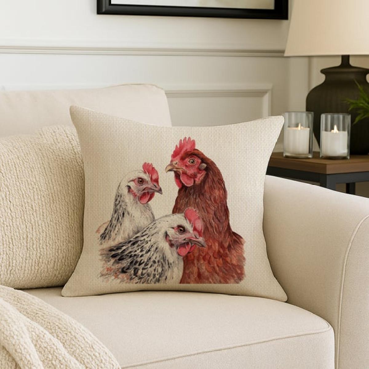 I love this square cushion for its playful charm and versatile design. The fun chicken print adds a quirky touch that works particularly well in eclectic or country-inspired interiors, but it can also add character to a more pared-back modern space when paired with neutral tones. It’s a great piece to layer on a sofa to introduce texture and visual interest. For styling tips, try mixing it with other cushions in complementary colours or textures for a curated look, and keep it casual by placing it on neutral or natural fabrics like linen or wool furniture. Its size and shape make it a practical choice for adding comfort and a touch of personality without overwhelming the space.