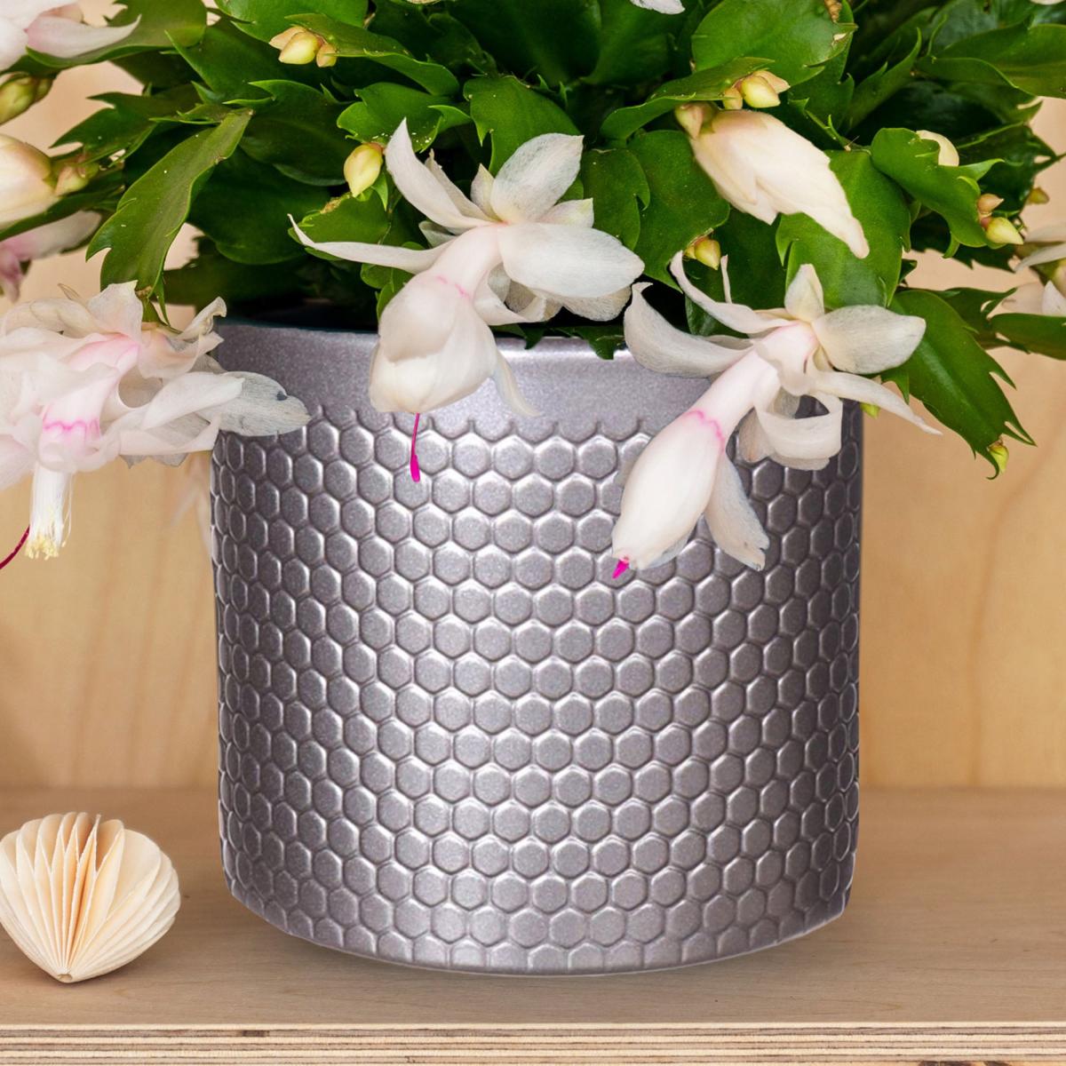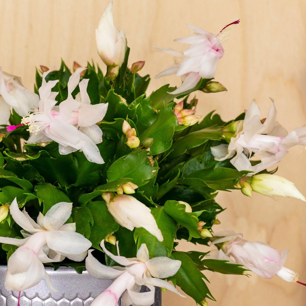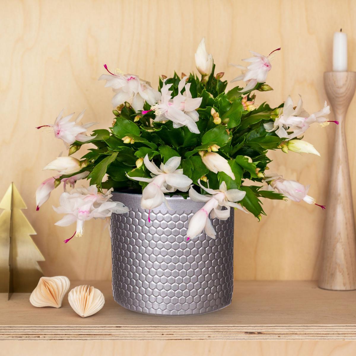 It’s hard to resist the charming Christmas Cactus, it’s festive, floral and absolutely bursting with beautiful white blooms. Known for its distinctive brightly coloured, trumpet-shaped flowers, these easy-care plants make fantastic gifts or look beautiful as a table centrepiece. Paired with a champagne coloured ceramic pot, to bring a glimmer of festive spirit to your home. Despite being a cactus, you’ll want to treat this plant a little differently to your average cacti. It’ll appreciate humidity and warm temperatures to thrive, and will need watering every 2-3 weeks. How to keep me happy: Please note: As this is a living product your plant may vary to the one photographed. Plant height measurement includes the pot. Width measurement is for the width of the pot only; width of the plant may vary. Please note, unfortunately we cannot deliver this item to Northern Ireland or the Channel Islands.