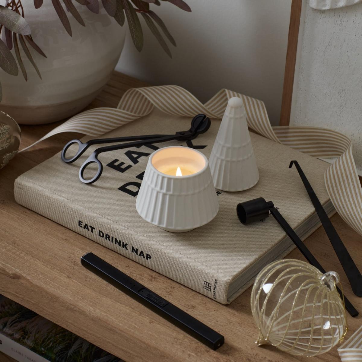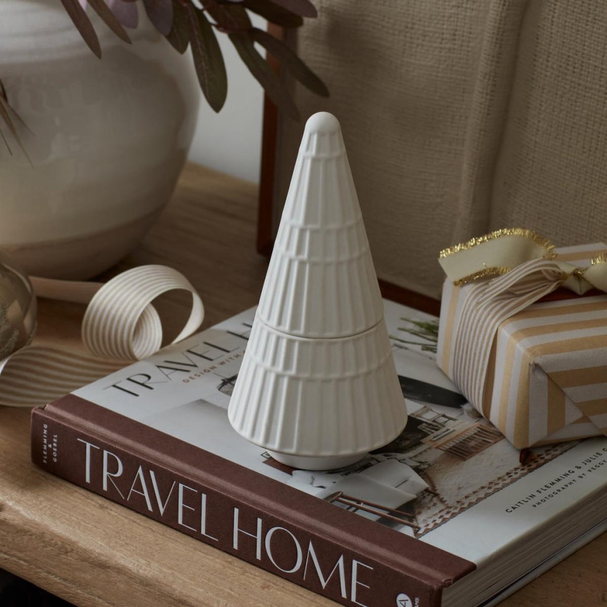 This gorgeous set comprises our new Natal fragranced candle in a beautiful ceramic Christmas tree shaped jar which can be reused afterwards plus the best-selling candle accessory set. Natal has frequently been described as Christmas in a candle, with its delicious blend of orange and cinnamon combined with clove and patchouli. The set comes presented in one of our Layered Lounge gift boxes.
