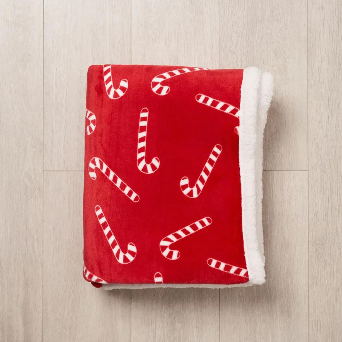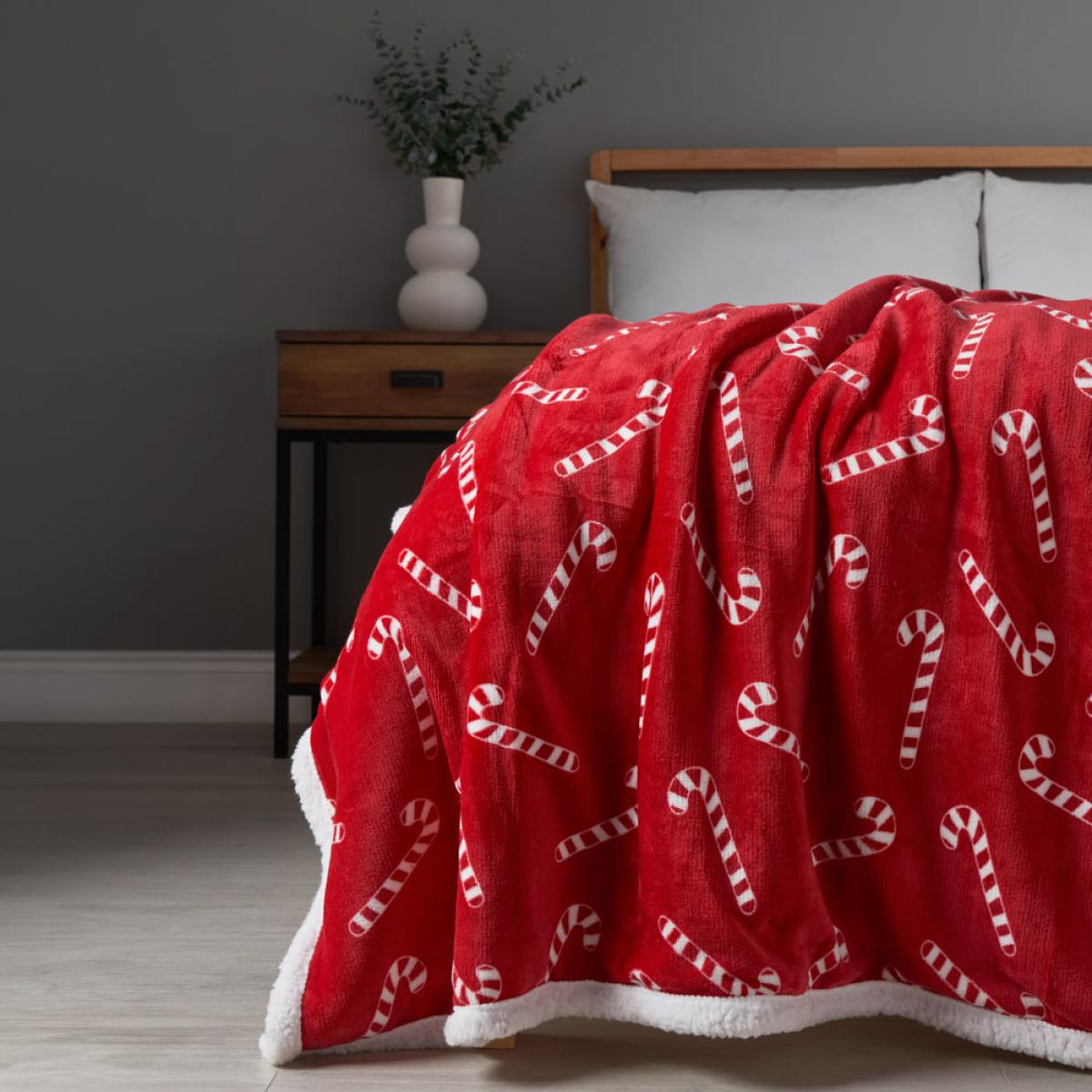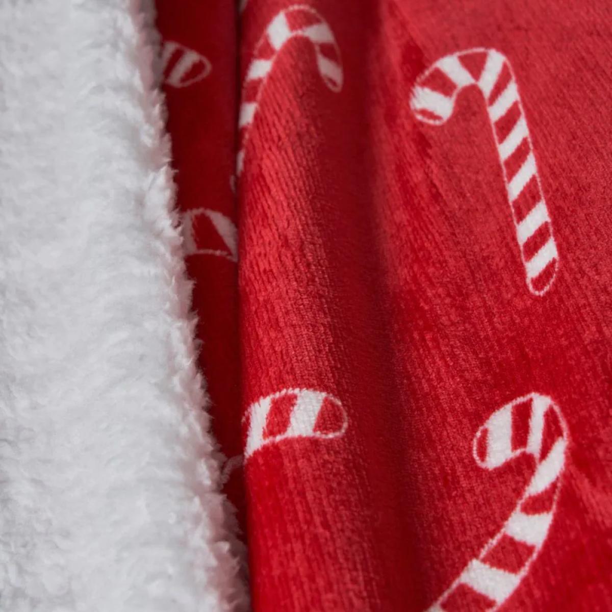 Christmas Candy Cane Throw with Sherpa Back, Red