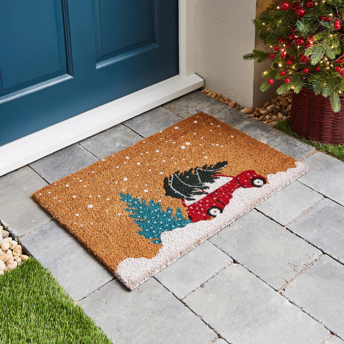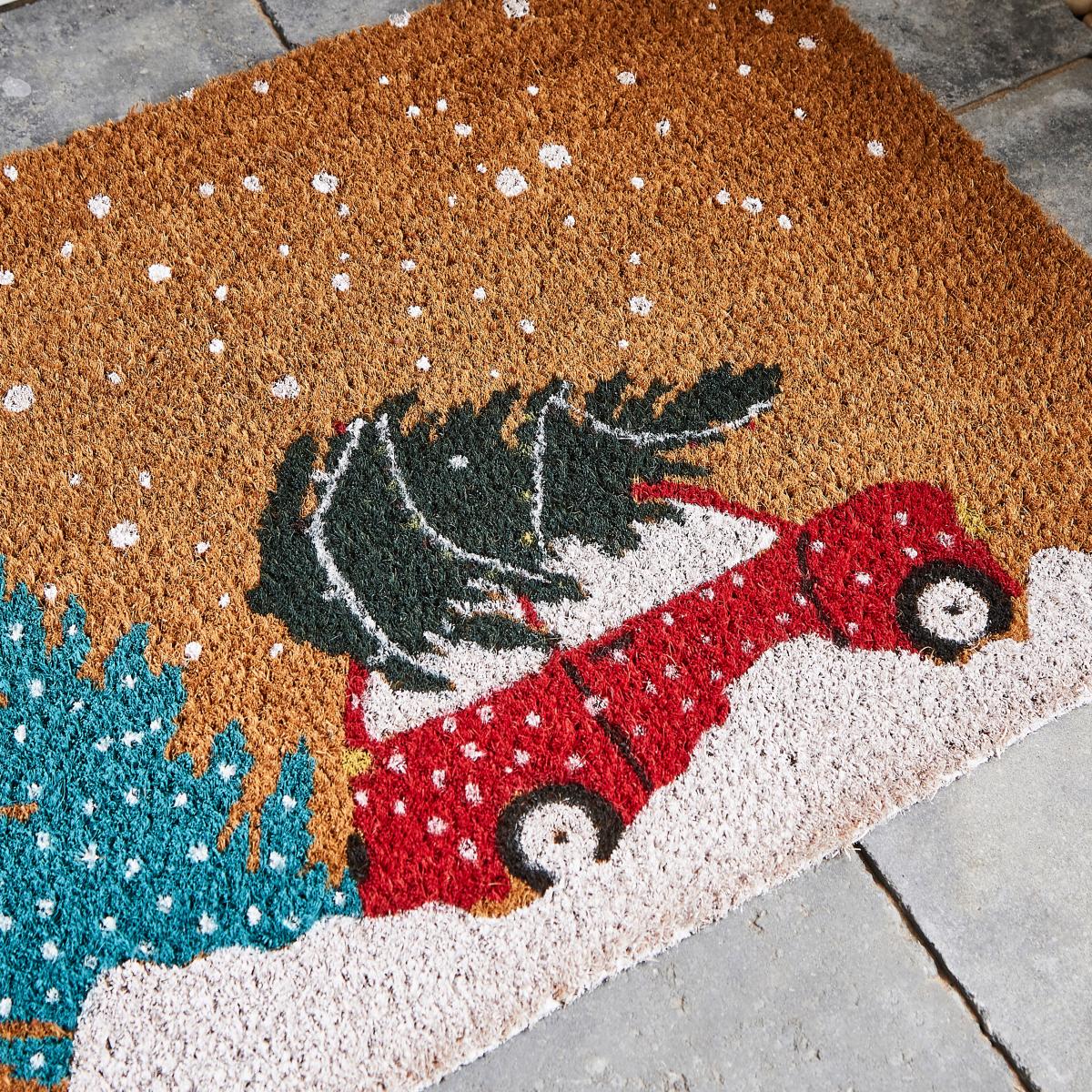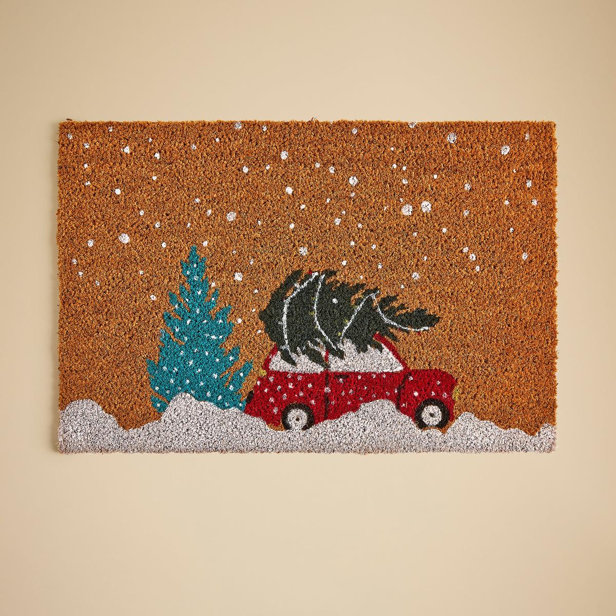 Christmas Car Coir Doormat Brown