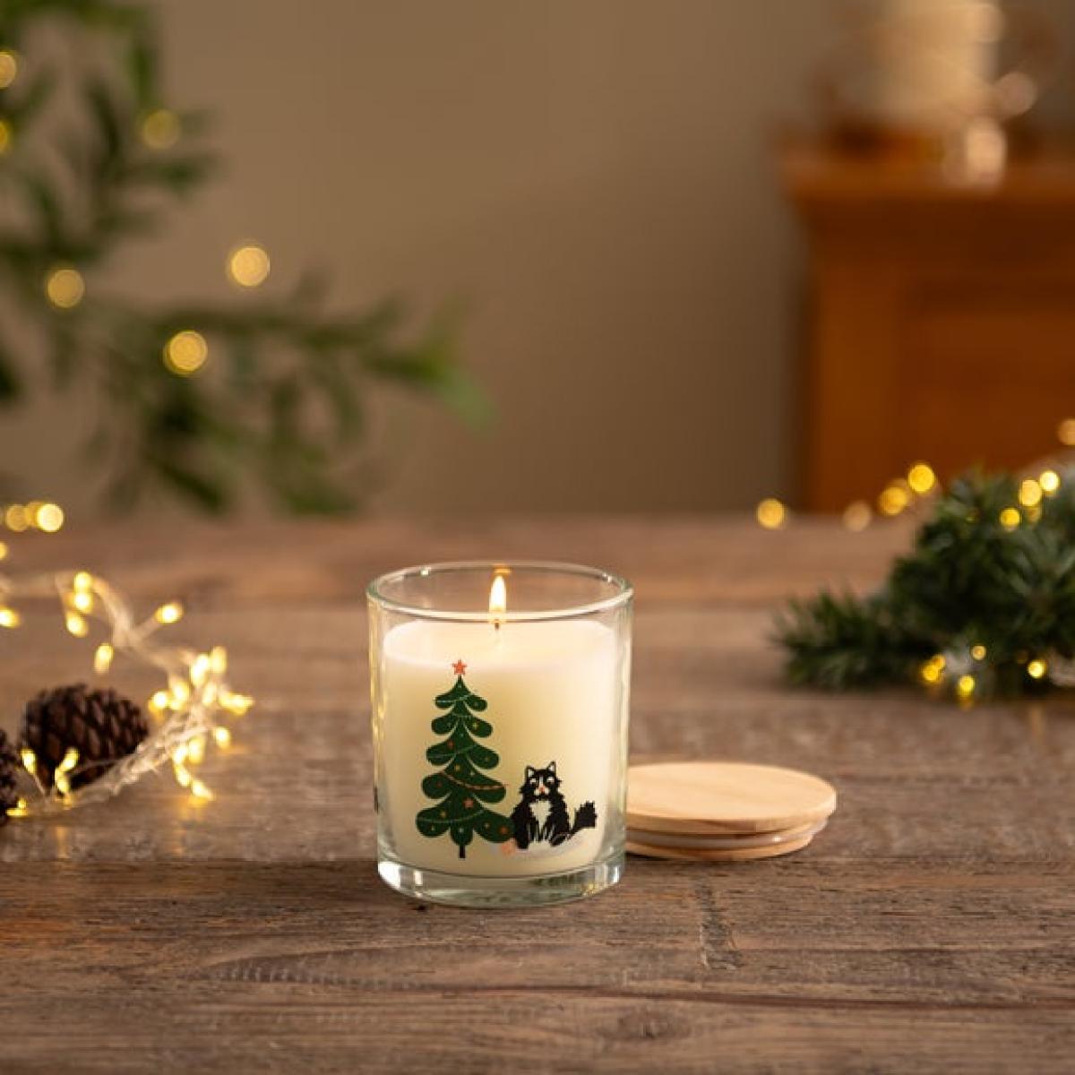 I love this little candle for Christmas decor because it combines festive charm with a practical touch. The cute cats and simple Christmas tree design make it ideal for adding a cosy, seasonal vibe to side tables, mantels, or shelf displays. It works well in both traditional and contemporary interiors, especially when paired with natural textures like wood and greenery. For styling, try grouping it with other candles or holiday accents to create a layered look, and use it to add warmth to dining tables or cosy corners. Its understated charm makes it a versatile piece that can be incorporated effortlessly into your festive setup.