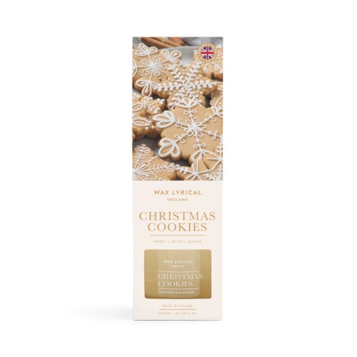 * Warming seasonal scent * Sweet spiced cookie fragrance * 200ml glass diffuser Bring the scent of festive baking into your home with the Christmas Cookies Diffuser. Zesty candied citrus top notes add a bright twist, while a heart of roasted cinnamon, ginger and clove delivers warming spice. The fragrance rests on a sweet base of biscuit, brown sugar and smooth vanilla for a truly indulgent finish. Presented in a 200ml glass bottle with reeds, it offers lasting seasonal fragrance, perfect for creating a cosy, comforting atmosphere throughout the holidays.
