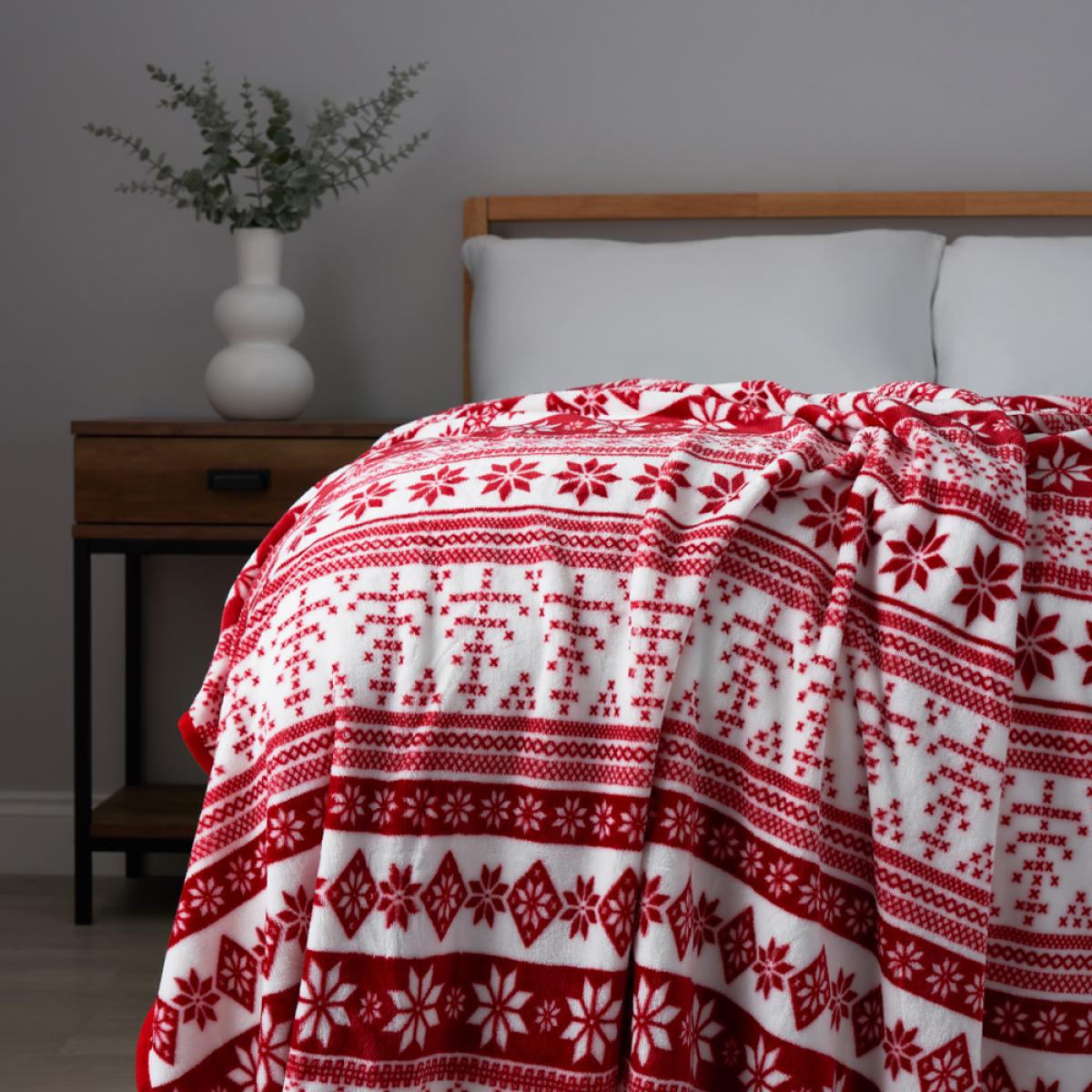 Add a touch of traditional Christmas flair to your decor with our Christmas Fairisle Throw in Red and White. The classic Fairisle pattern in festive colours exudes holiday spirit, making it an ideal addition to your home during the season. Whether draped over your sofa or used as a cosy blanket, this throw brings a festive ambience to your living space.