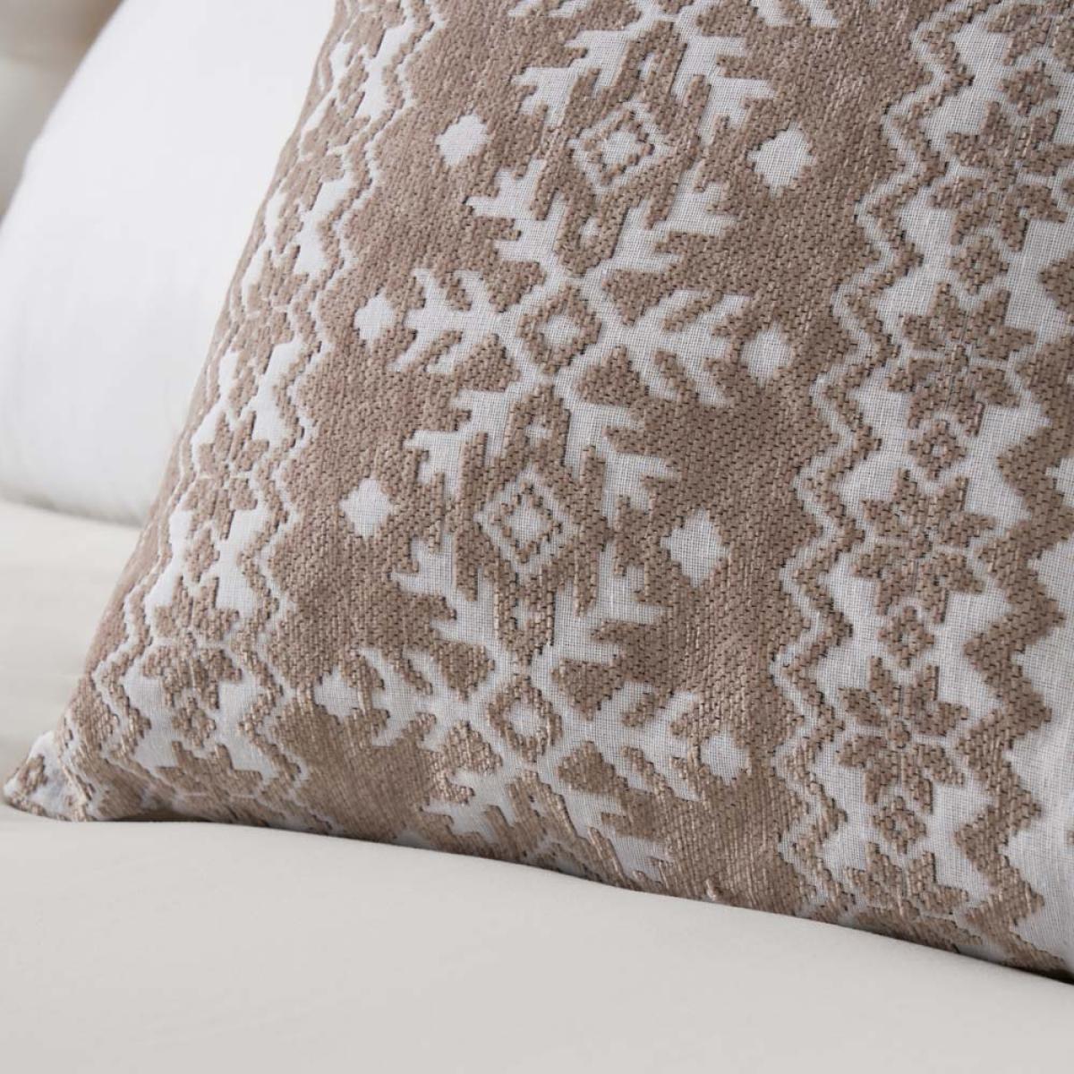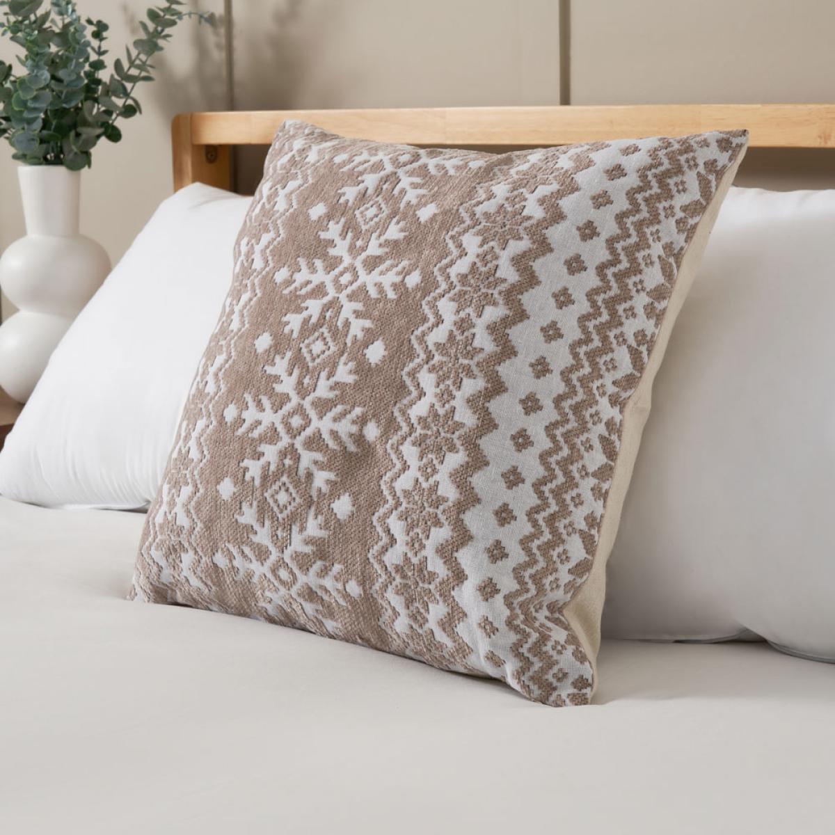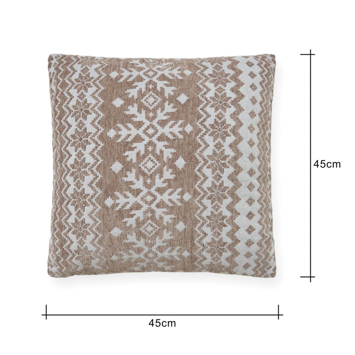Bring a cosy, seasonal touch to your space with the Fairisle Cushion, featuring a classic winter knit design in soft, natural tones. Perfect for layering on sofas or beds, it adds warmth and texture to your festive decor. The cushion’s soft tactile finish and timeless pattern make it a versatile accent for any room. Traditional Fairisle pattern in soft natural and cream; Ideal choice for winter styling and cosy corners; Soft-touch fabric with plush inner for comfort.