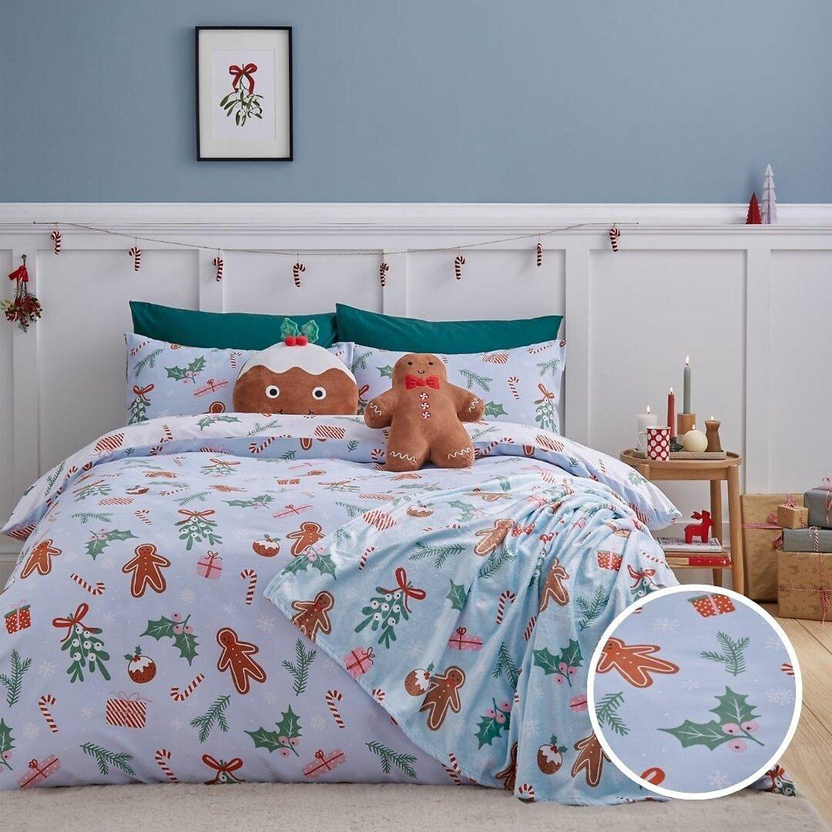 Create the magic of Christmas in your bedroom with this festive duvet set adorned with mistletoe, candy canes, presents, gingerbread men, and delightful Christmas puddings. Fully reversible with your choice of icy blue or pure snowy white to transform your bedroom into a winter wonderland. Easy care and quick to dry, this microfibres set is a time-saving and hassle-free bedding option during the holiday season. Catherine Lansfield is renowned for style and quality - designed and developed in Great Britain.100% POLYESTERSizes Available:135x200 cm (Single)200x200 cm (Double)220x230 cm (King)This product will be dispatched by one of our trusted suppliers. You’ll be contacted by their selected courier about your delivery.