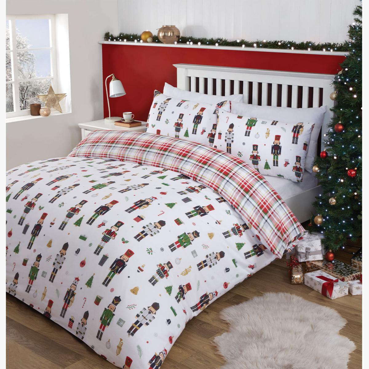 Christmas Nutcrackers Duvet Cover and Pillowcase Set - White / Super King size