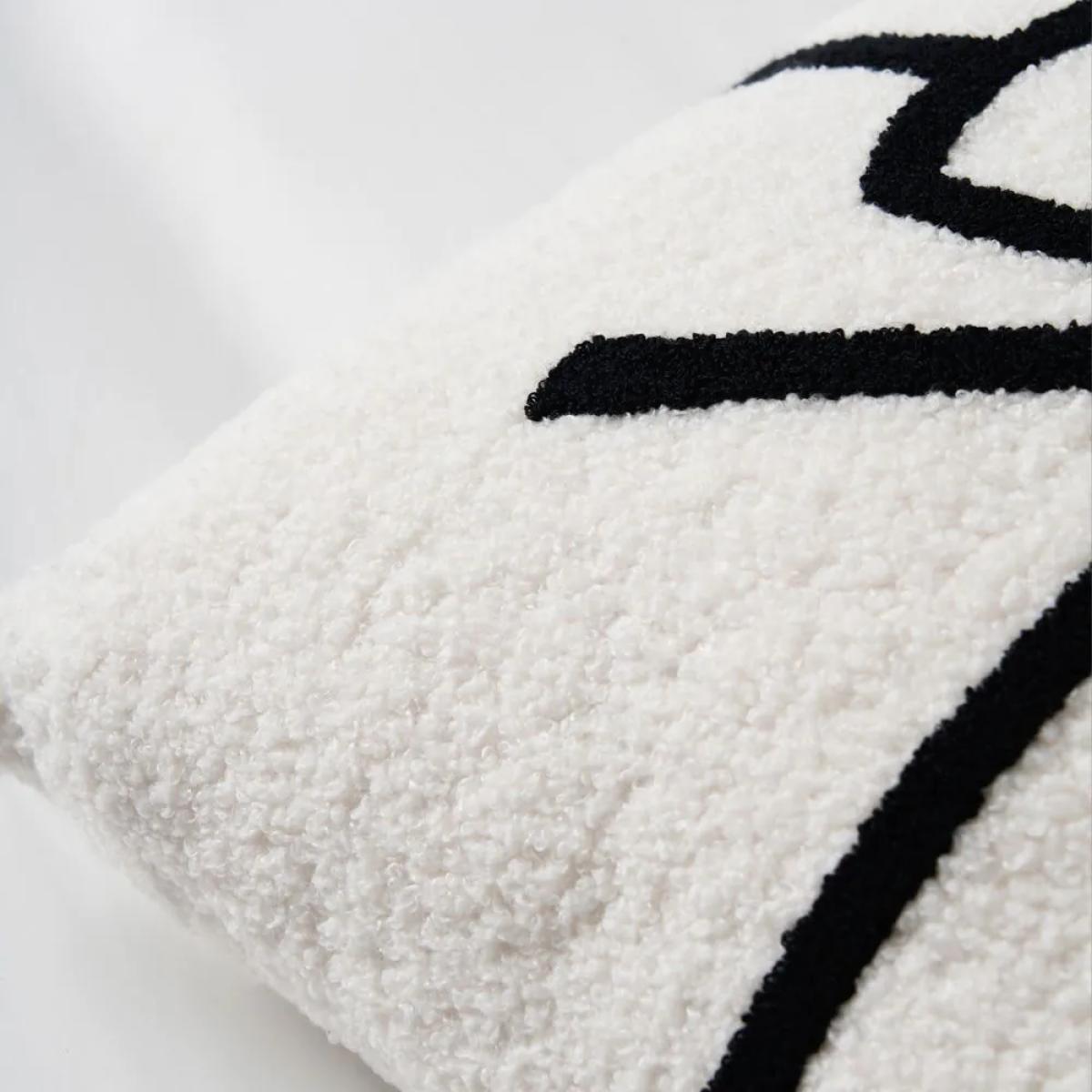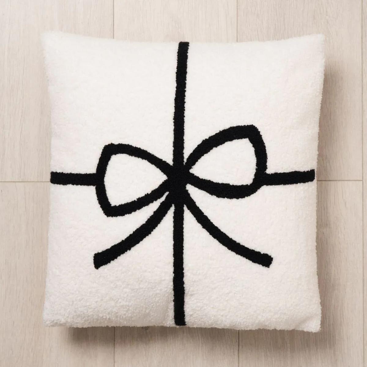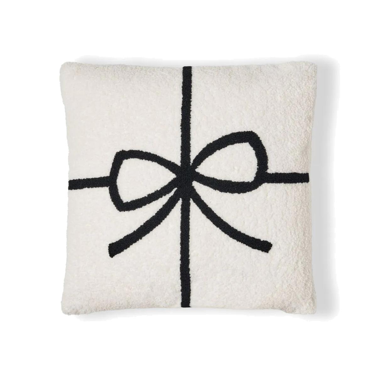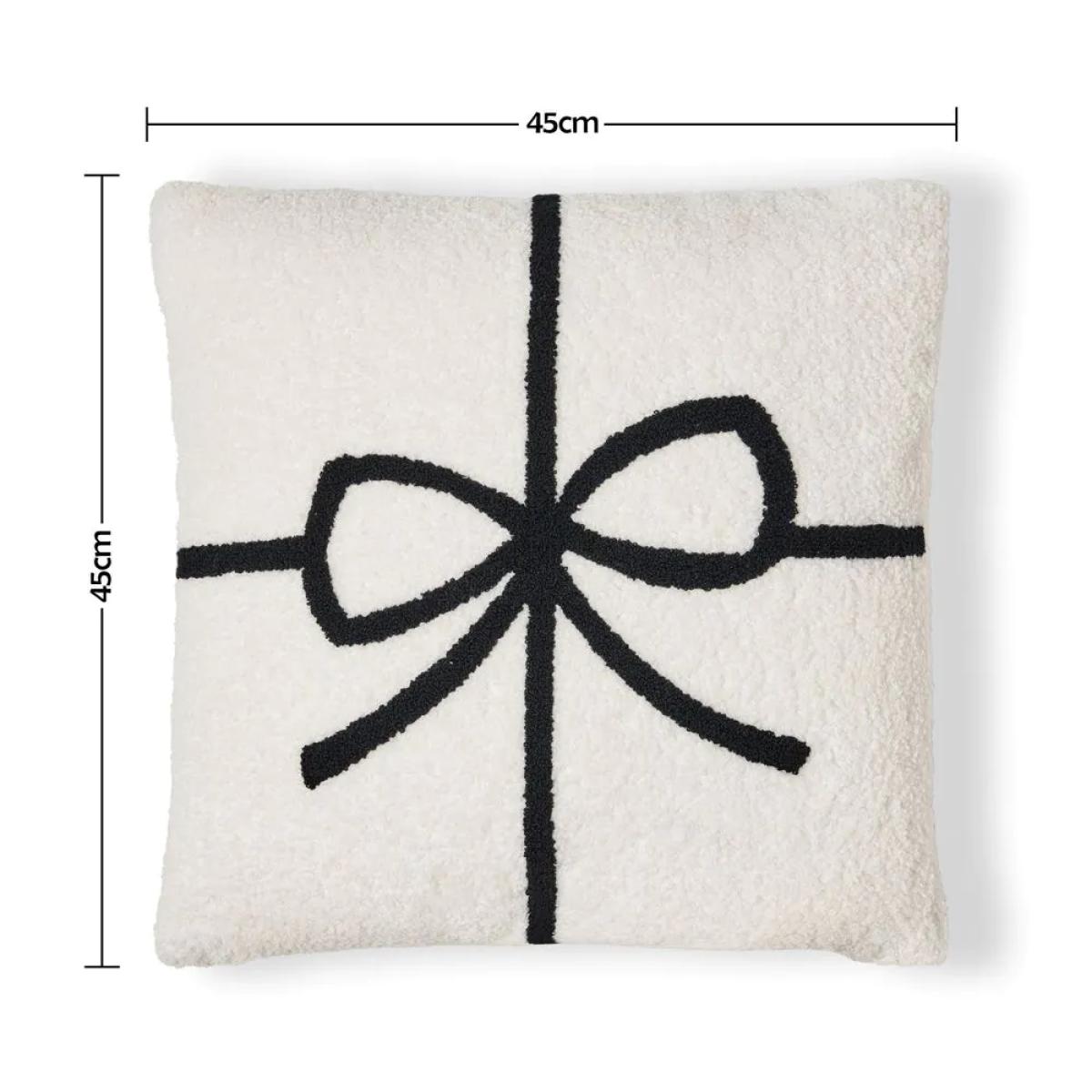 I love this cushion for its playful yet sophisticated design, making it a versatile addition to many interiors. The white tufted fabric with the black bow detail creates a charming festive vibe, perfect for Christmas decorating but subtle enough to work year-round in a contemporary or Scandi-inspired scheme. It's an ideal piece for adding texture and a touch of whimsy to sofas, armchairs, or even bed lounging areas. Practical styling tips include pairing it with neutral-toned cushions to highlight the design or using it as a statement piece on a minimalist sofa. It’s especially well-suited for modern, cosy winter living rooms or festive settings, but its classic monochrome palette allows it to blend seamlessly into various colour palettes.