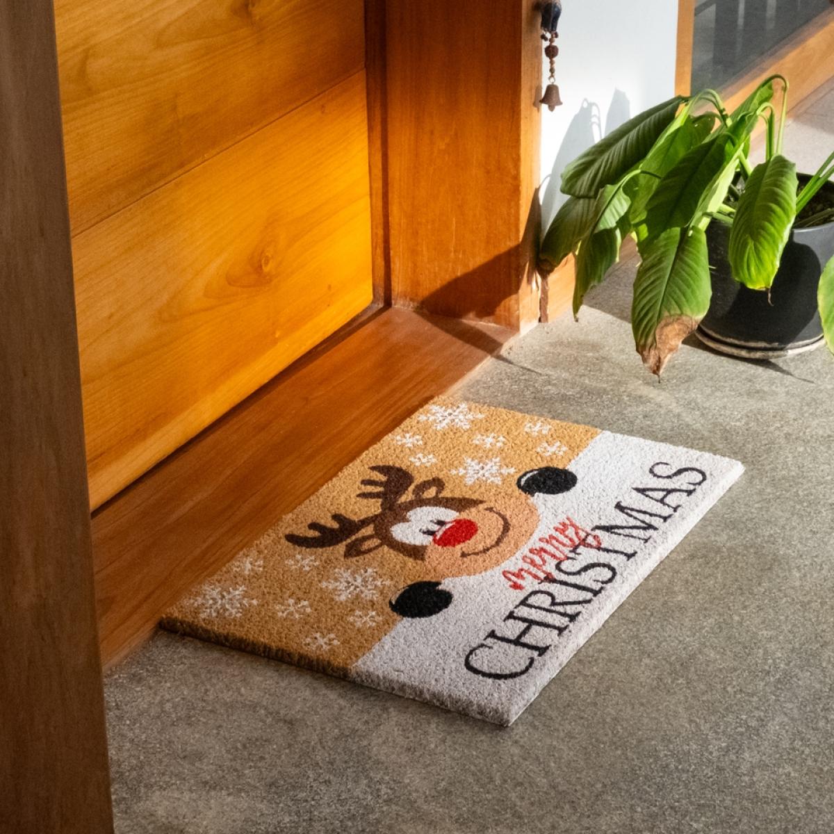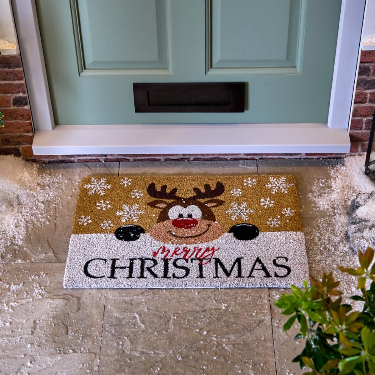 Christmas Rudolph Reindeer PVC Backed Coir Doormat - 40 x 60cm