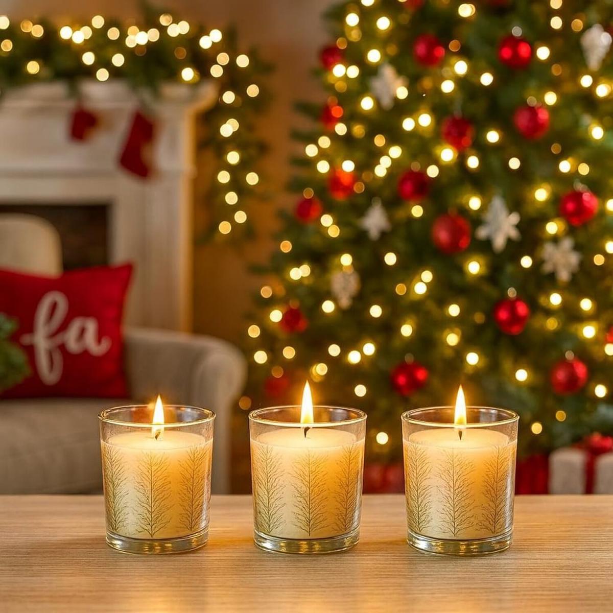 I love these candles for their versatile and clean look, making them a great addition to both traditional and contemporary interiors. Their white jar makes them easy to incorporate into colour schemes, whether paired with neutral tones or festive reds and greens. They work particularly well styled on mantelpieces, side tables, or as centrepieces at dinner settings. For a cosy seasonal vibe, group the set together with natural elements like pinecones or greenery, or scatter them across shelves for a subtle festive touch. A practical tip is to use LED candle alternatives for a safer option if you’re placing them where children or pets are present.