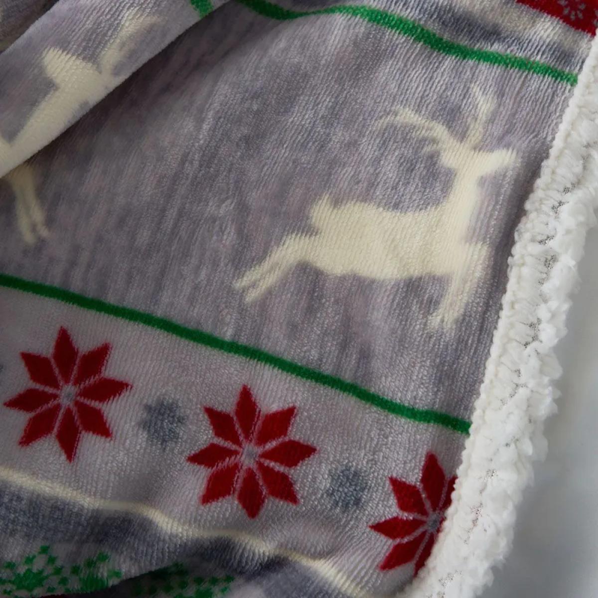Celebrate the festive season with the Christmas Stag Stripe Throw with Sherpa in red and green. This cosy throw features a charming stag stripe design, perfect for adding a touch of holiday spirit to your home. Its soft sherpa backing ensures warmth and comfort during chilly winter nights.
