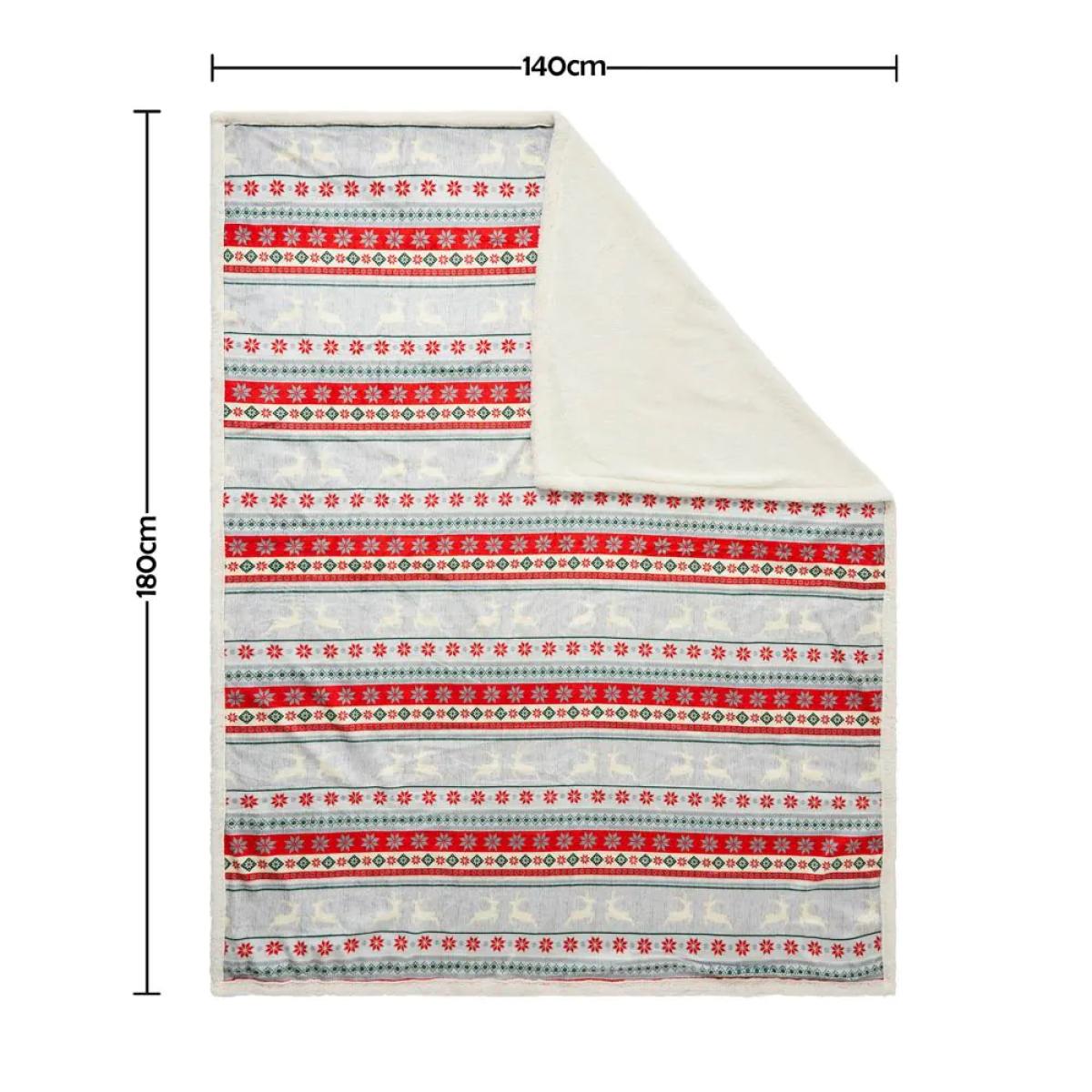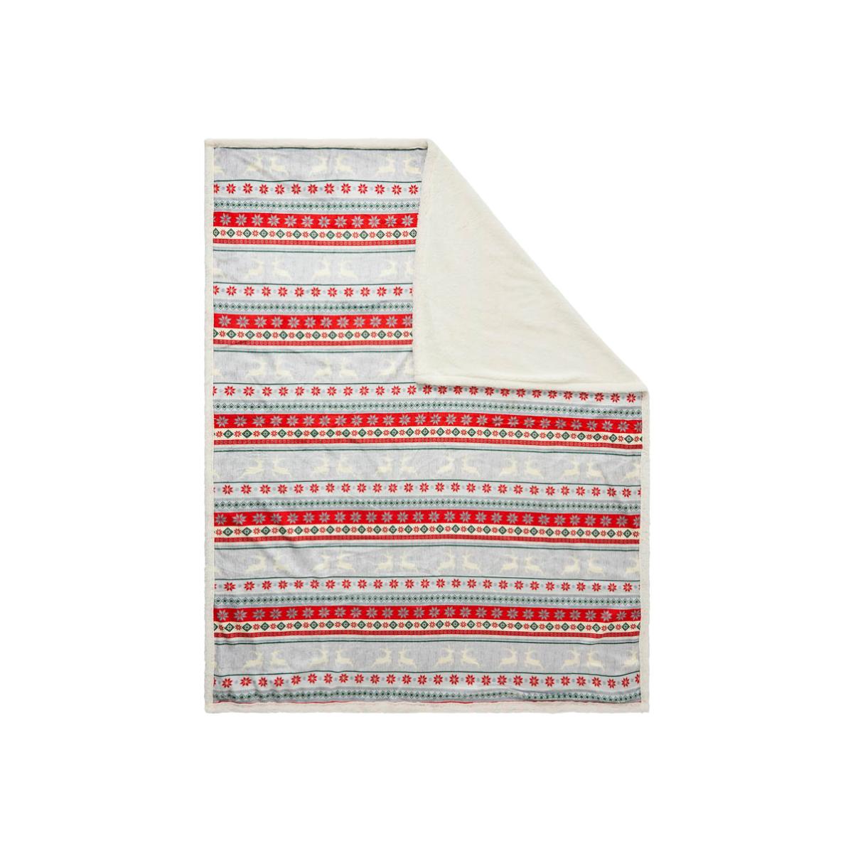 Christmas Stag Stripe Throw with Sherpa, Red & Green