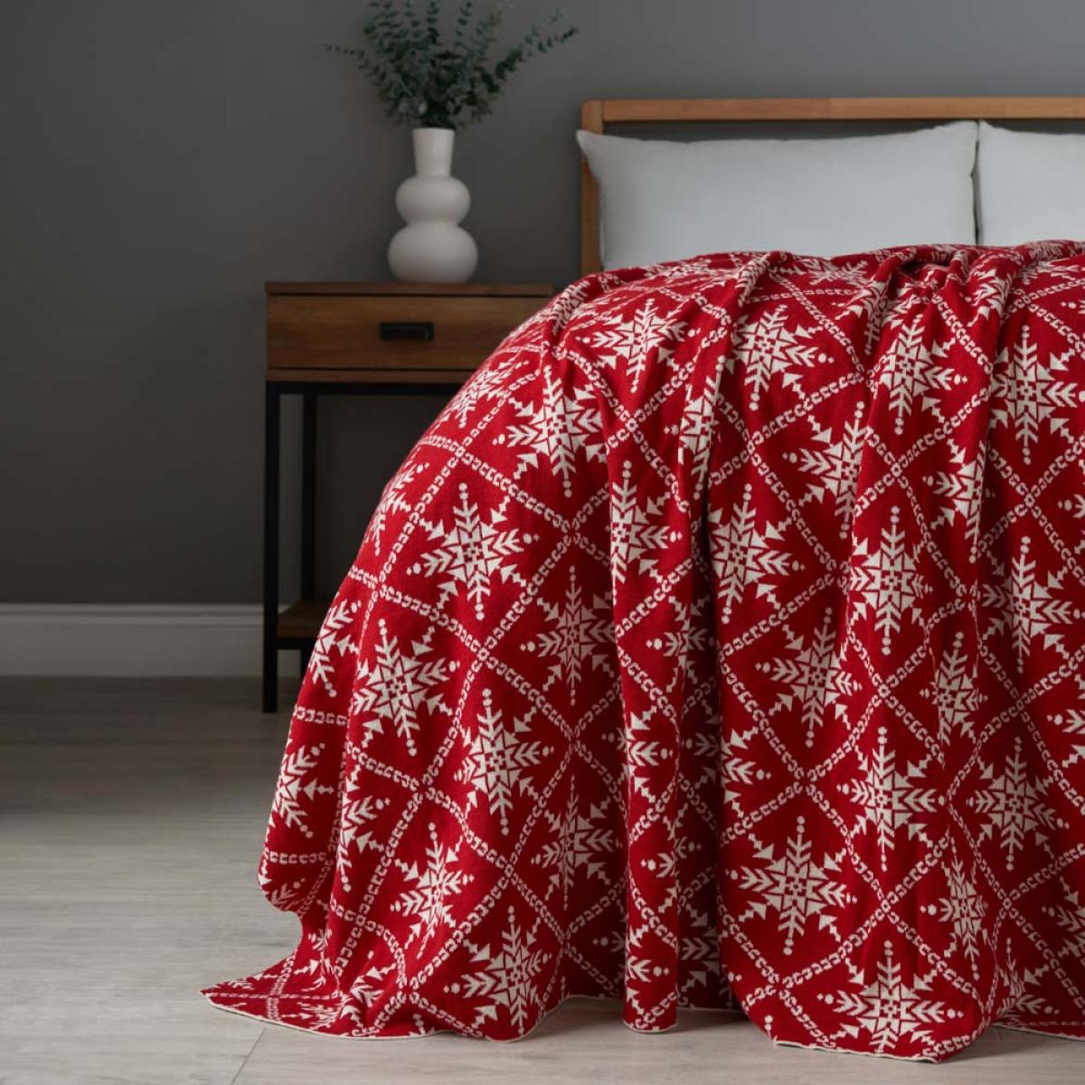 Elevate your Christmas home decor with the Traditional Design Throw. This throw features a timeless snowflake pattern that blends both classic and modern interiors seamlessly. Crafted from 100% cotton, this throw offers warmth, comfort and style in any room. Style this throw by draping it over your sofa or bed to add a luxurious Christmas touch to your home decor. Machine washable; 100% cotton; Reversible design.