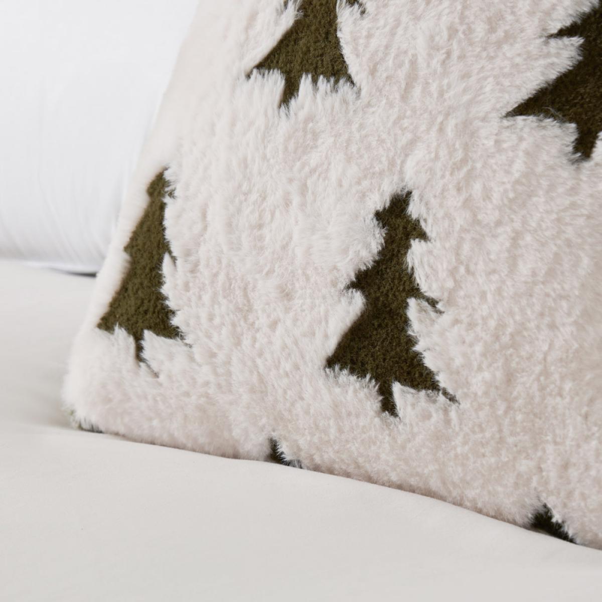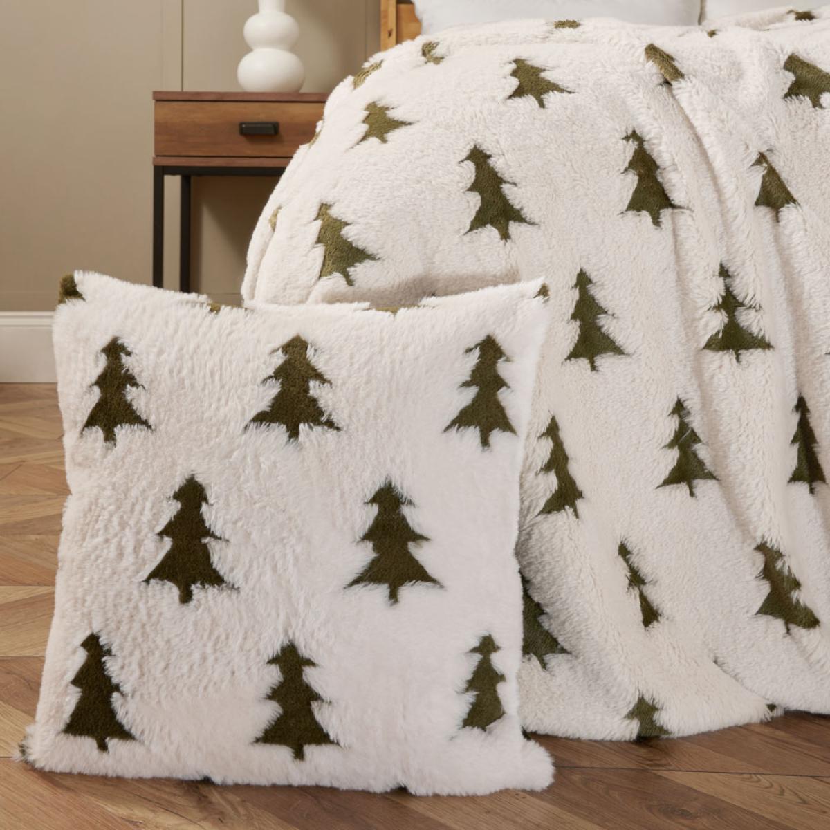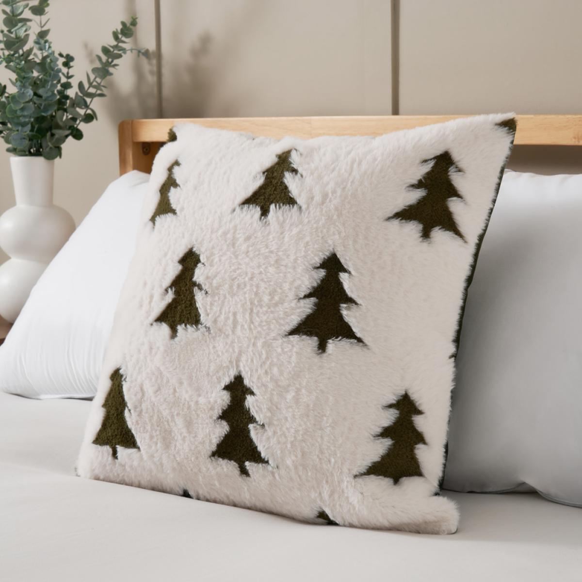 Create a cosy winter retreat with the Christmas Trees Faux Fur Cushion, featuring a charming green tree motif set against a plush faux fur background. The soft cream finish adds a calming, neutral tone that works beautifully with festive or Scandi-inspired themes. Designed for comfort and style, its plush fabric is perfect for snuggling up on chilly evenings. Cream faux fur with Christmas tree detail; Adds texture and warmth to sofas or beds; Designed for comfort and finished with a soft-touch cover.