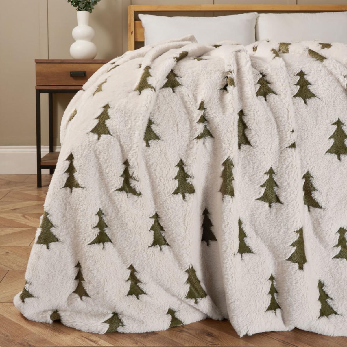 Wrap yourself in festive comfort with the Christmas Trees Faux Fur Throw, a seasonal essential for cosy nights in. Its soft cream faux fur is designed with subtle green tree motifs, making it a stylish accent for sofas, armchairs, or the foot of the bed. Designed to offer warmth and plush texture, it’s the perfect finishing touch for your winter decor. Generously sized for layering or lounging; Soft, plush fabric ideal for colder months; Cream faux fur with delicate Christmas tree pattern.