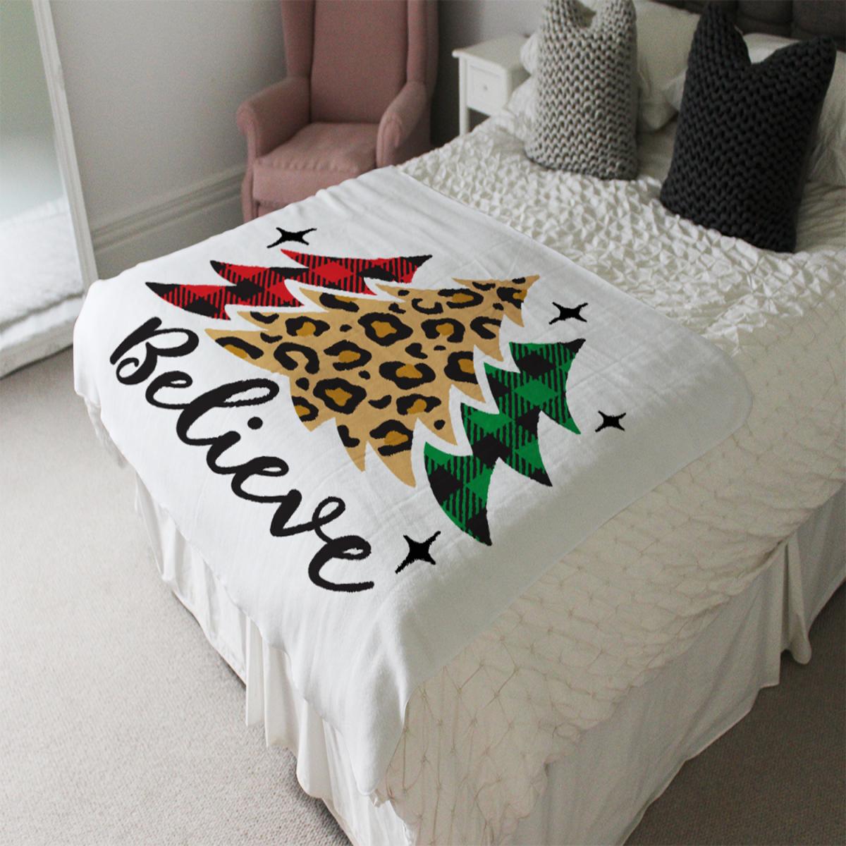 Christmas Trees With Leopard Print Soft Blanket - Brown