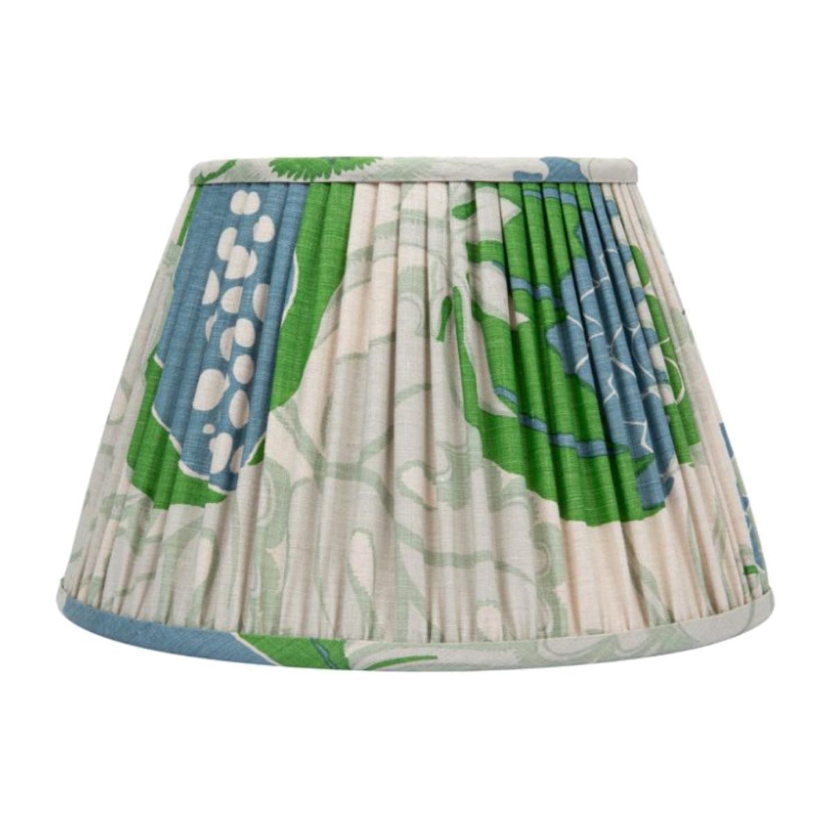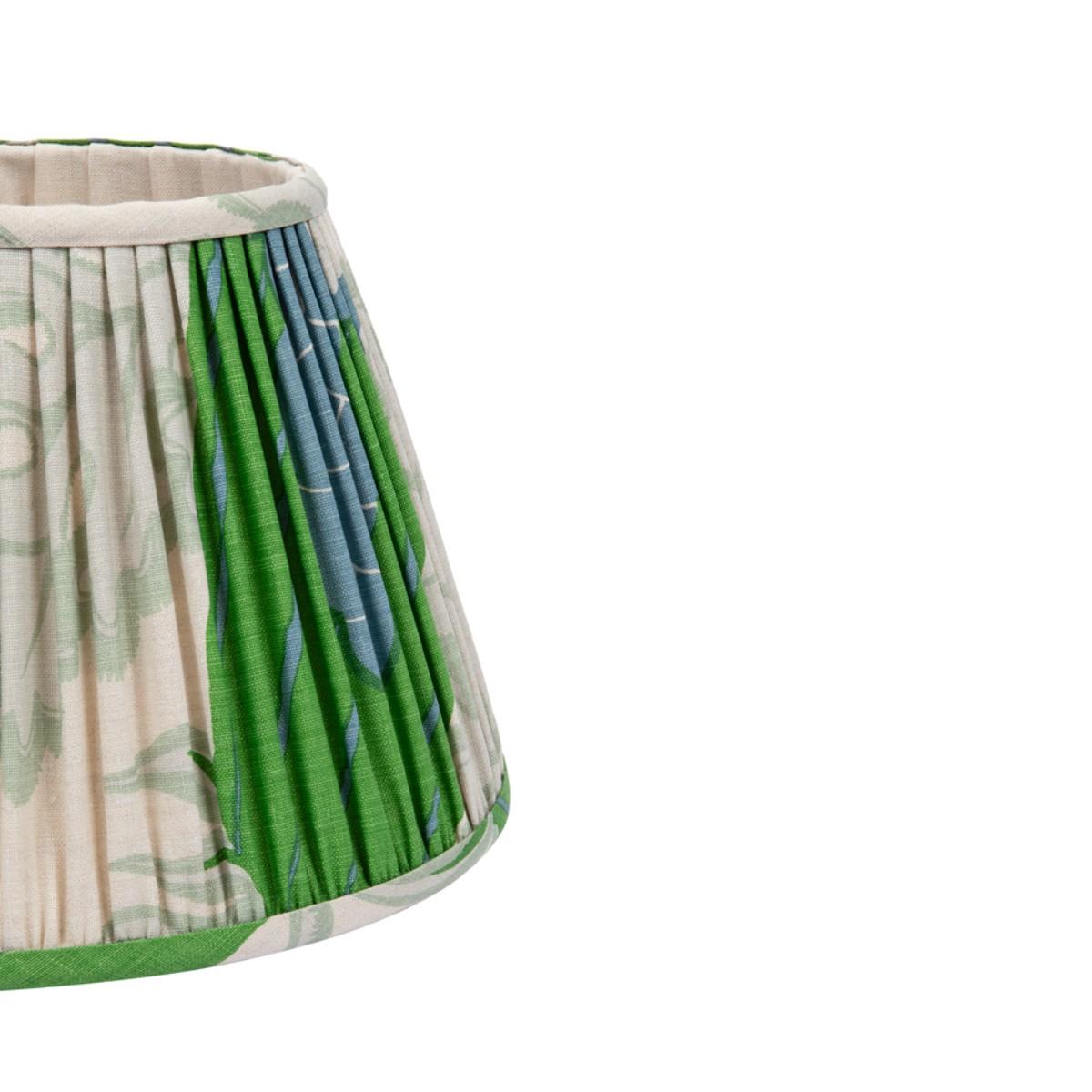 Illuminate your space with Christopher Farr's enchanting 14” Michael Szell Carnival Lampshade with a UK/EU Fixed Gimbal fitting, crafted from vibrant green, best-selling Carnival fabric, and printed in Ivos London. This charming shade features a captivating pleated design on a sturdy 14" metal frame, lined with luxurious Malmedy Linen in Natural. It effortlessly adds a playful elegance that transforms any room. Handcrafted in Dollis Hill, London with love and care, this lampshade is not just a lighting accessory—it’s a statement piece that brings warmth and character to your home. Lampshades from the CLOTHSHOP collection by Christopher Farr feature beloved best-selling fabrics and are available in two sizes: 6" and 14" for the UK, EU, and US markets. If you’re interested in a custom-sized lampshade, please get in touch—we're delighted to accommodate your request! Please note that the lead time for custom orders is four weeks, and prices may vary for bespoke designs.