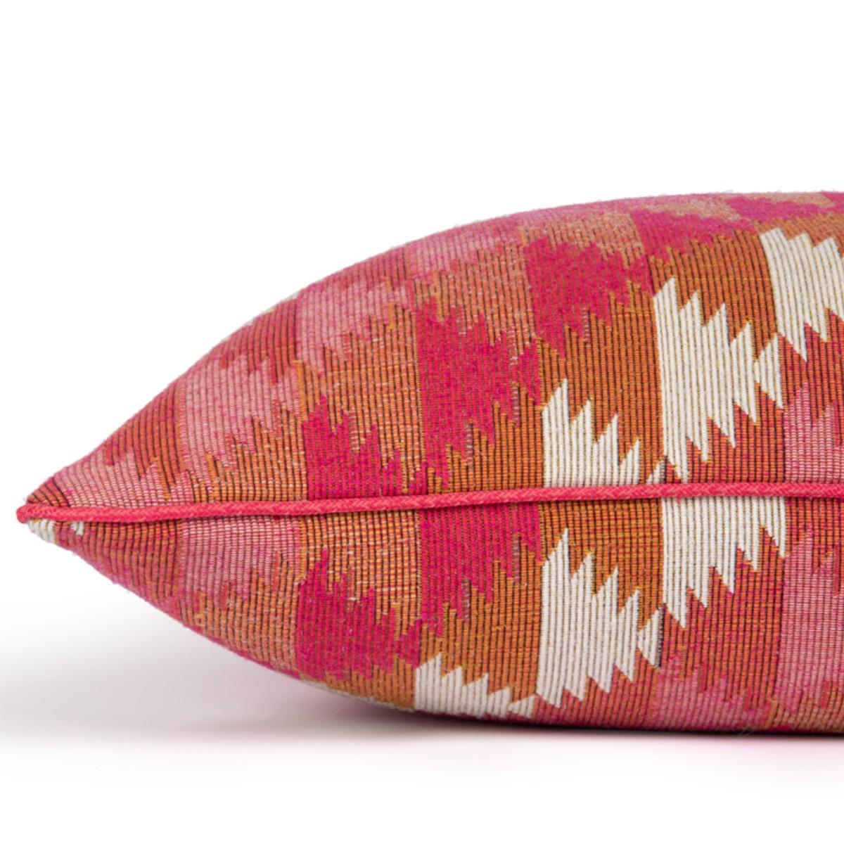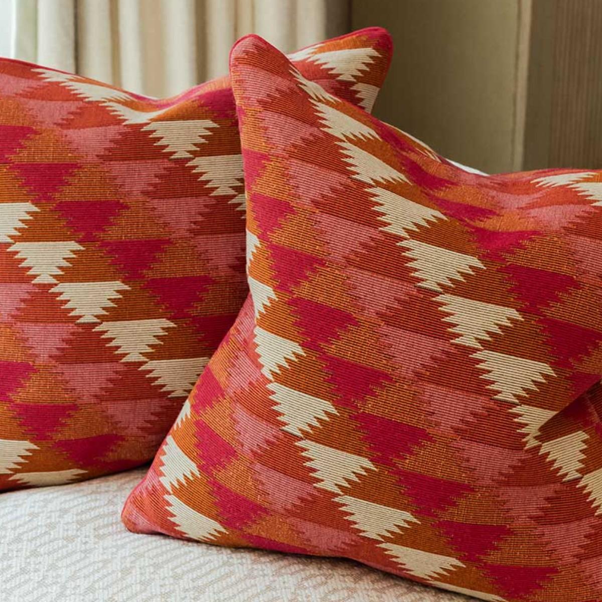 Busy Lizzie, inspired by a mixture of vintage weaves, exudes an air of elegance & sophistication. The fabric’s soft yet durable composition allows it to transform furniture into statement pieces, while its geometric pattern adds a touch of splendour to any room. Kemp expresses her vision for Busy Lizzie, stating, “This is a great all-round weave that is strong enough to go on a Banquette and have several small children and dogs roaming around on it. It is colourful, buzzy, and fun. The name means that this fabric will be kept busy with wear and tear and plenty of rubbing. ". Cushion panels are cut at random from the fabric. If you have a specific cushion placement in mind, we offer a bespoke service to ensure the desired section of the pattern is highlighted. Please note that this may impact pricing and delivery lead times. We recommend contacting us before placing your order to discuss your request.