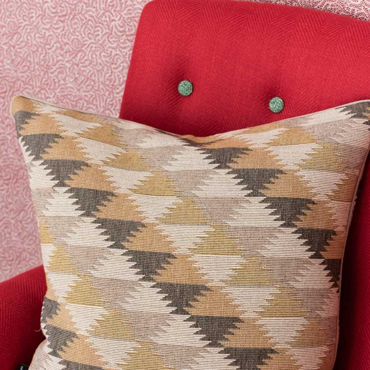 Busy Lizzie, inspired by a mixture of vintage weaves, exudes an air of elegance & sophistication. The fabric’s soft yet durable composition allows it to transform furniture into statement pieces, while its geometric pattern adds a touch of splendour to any room. Kemp expresses her vision for Busy Lizzie, stating, “This is a great all-round weave that is strong enough to go on a Banquette and have several small children and dogs roaming around on it. It is colourful, buzzy, and fun. The name means that this fabric will be kept busy with wear and tear and plenty of rubbing. ". Cushion panels are cut at random from the fabric. If you have a specific cushion placement in mind, we offer a bespoke service to ensure the desired section of the pattern is highlighted. Please note that this may impact pricing and delivery lead times. We recommend contacting us before placing your order to discuss your request.