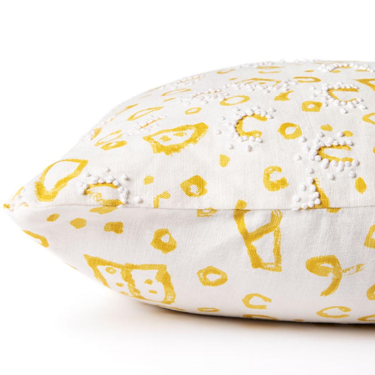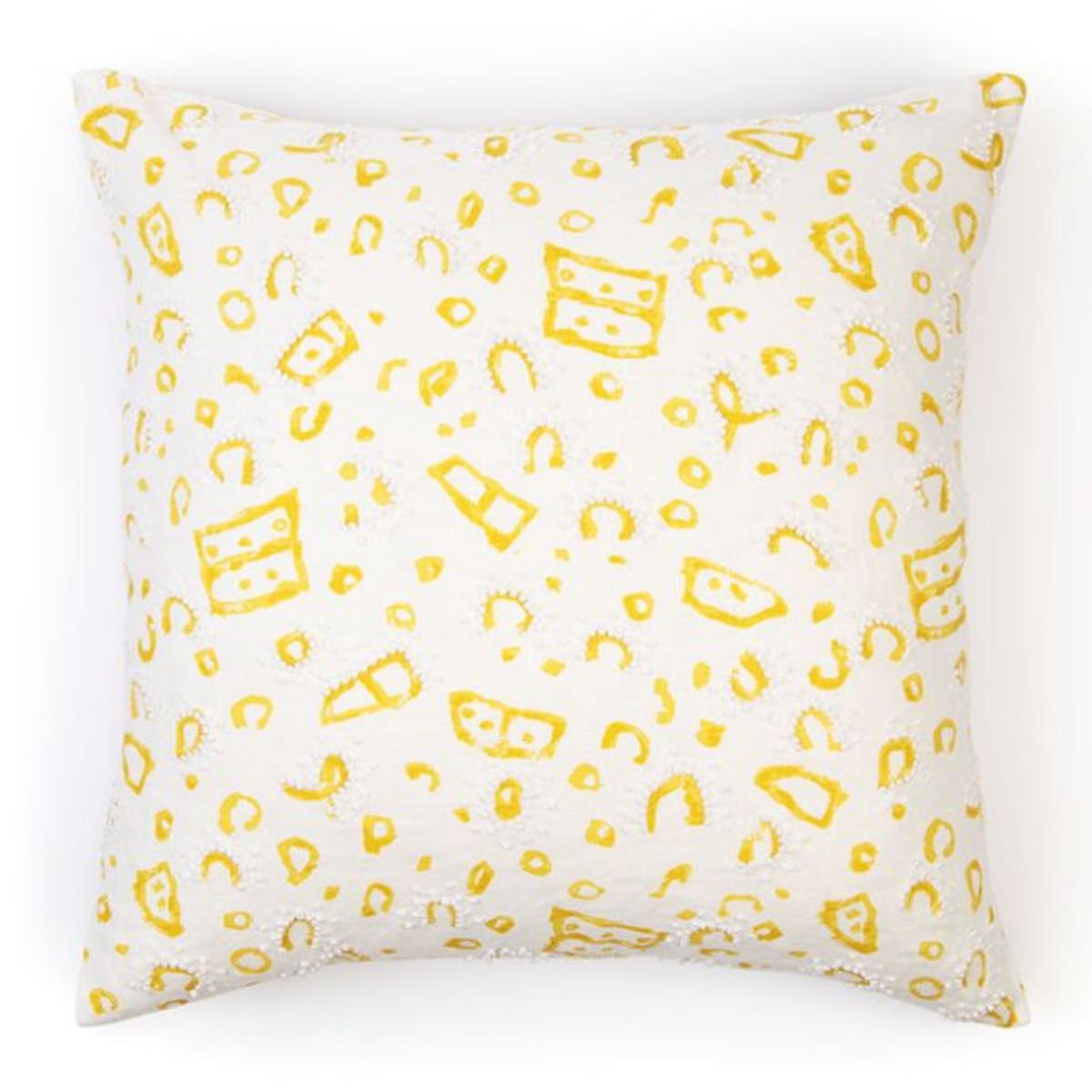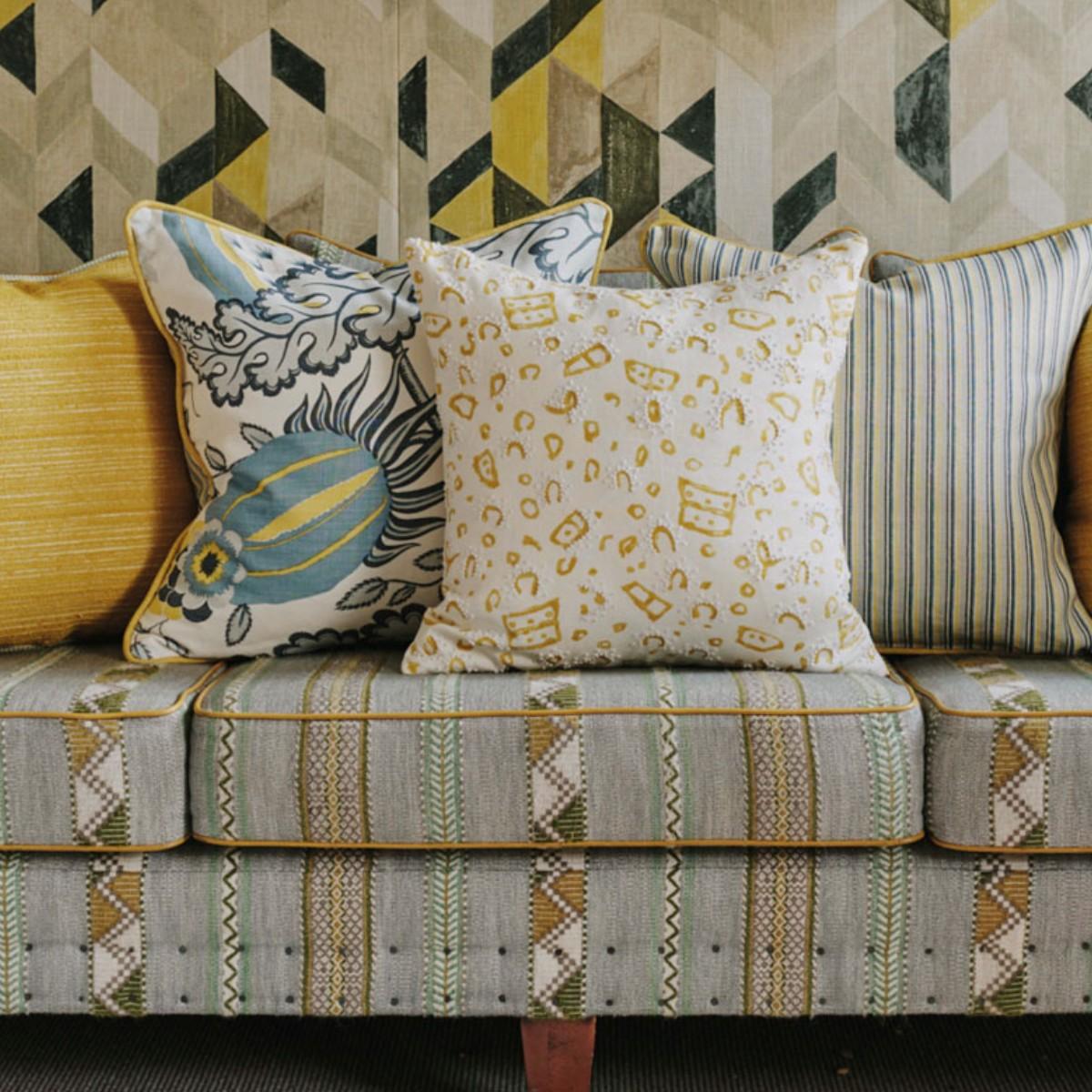 A delicate small-scale printed pattern by Lisa Miller, refigured as a square cushion with beautiful hand embroidered embellishments. Cushion panels are cut at random from the fabric. If you have a specific cushion placement in mind, we offer a bespoke service to ensure the desired section of the pattern is highlighted. Please note that this may impact pricing and delivery lead times. We recommend contacting us before placing your order to discuss your request.