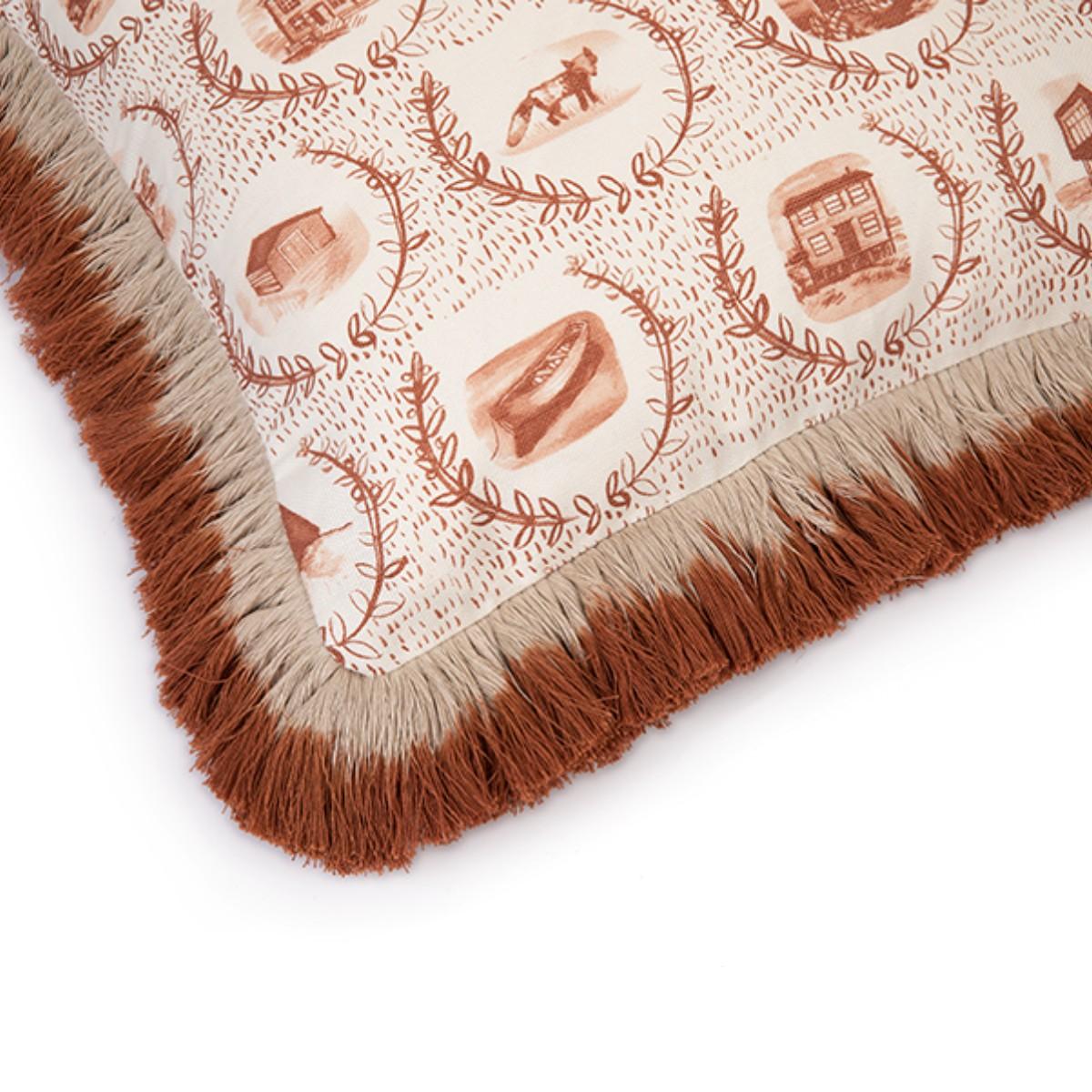 Donna Wilson’s artistic interpretation breathes life into traditional motifs, through scenes reminiscent of Toile de Jouy, this design invites you to immerse yourself in the captivating stories and heritage of Fogo Island. Cushion panels are cut at random from the fabric. If you have a specific cushion placement in mind, we offer a bespoke service to ensure the desired section of the pattern is highlighted. Please note that this may impact pricing and delivery lead times. We recommend contacting us before placing your order to discuss your request. This cushion is made to order and there is a 2 week lead-time, please contact us to enquire.