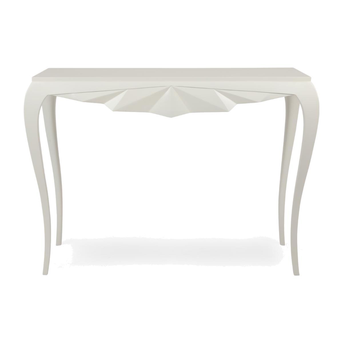 I’m particularly drawn to the Adrienne console for its clean, sculptural apron detail and slender proportions - it slots neatly into a hallway, behind a sofa or even in a master bedroom as a slim dressing table. Its white lacquered finish works well in contemporary, Scandinavian or pared-back transitional interiors, providing a crisp backdrop for your accessories. Styling tip: keep clutter to a minimum. Pair with a tall, slim table lamp on one side, a low ceramic vase or sculptural bowl on the other, and hang a simple round or oval mirror above to echo the console’s curves. A small stack of coffee-table books and a sprig of greenery will complete the look without overwhelming its elegant form.