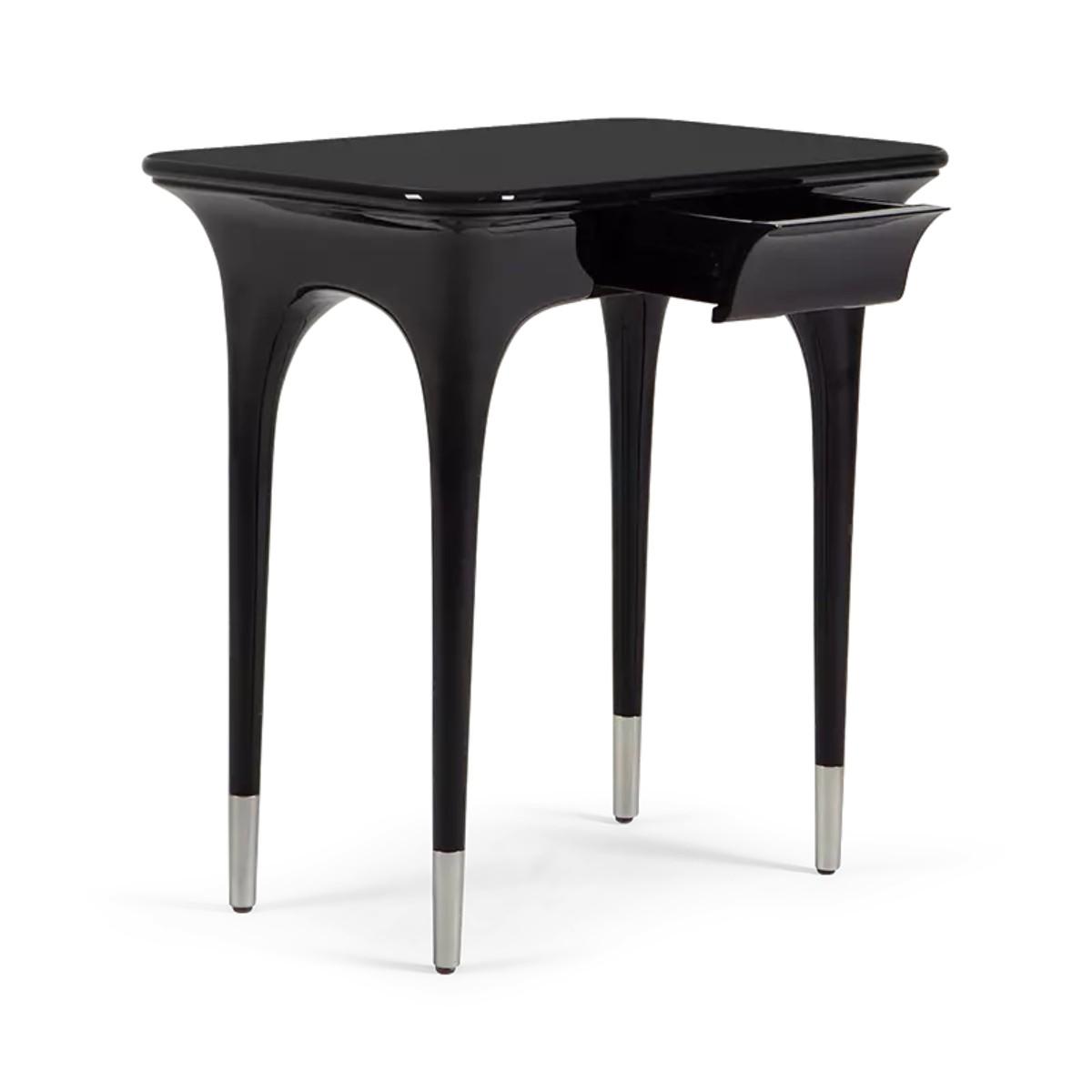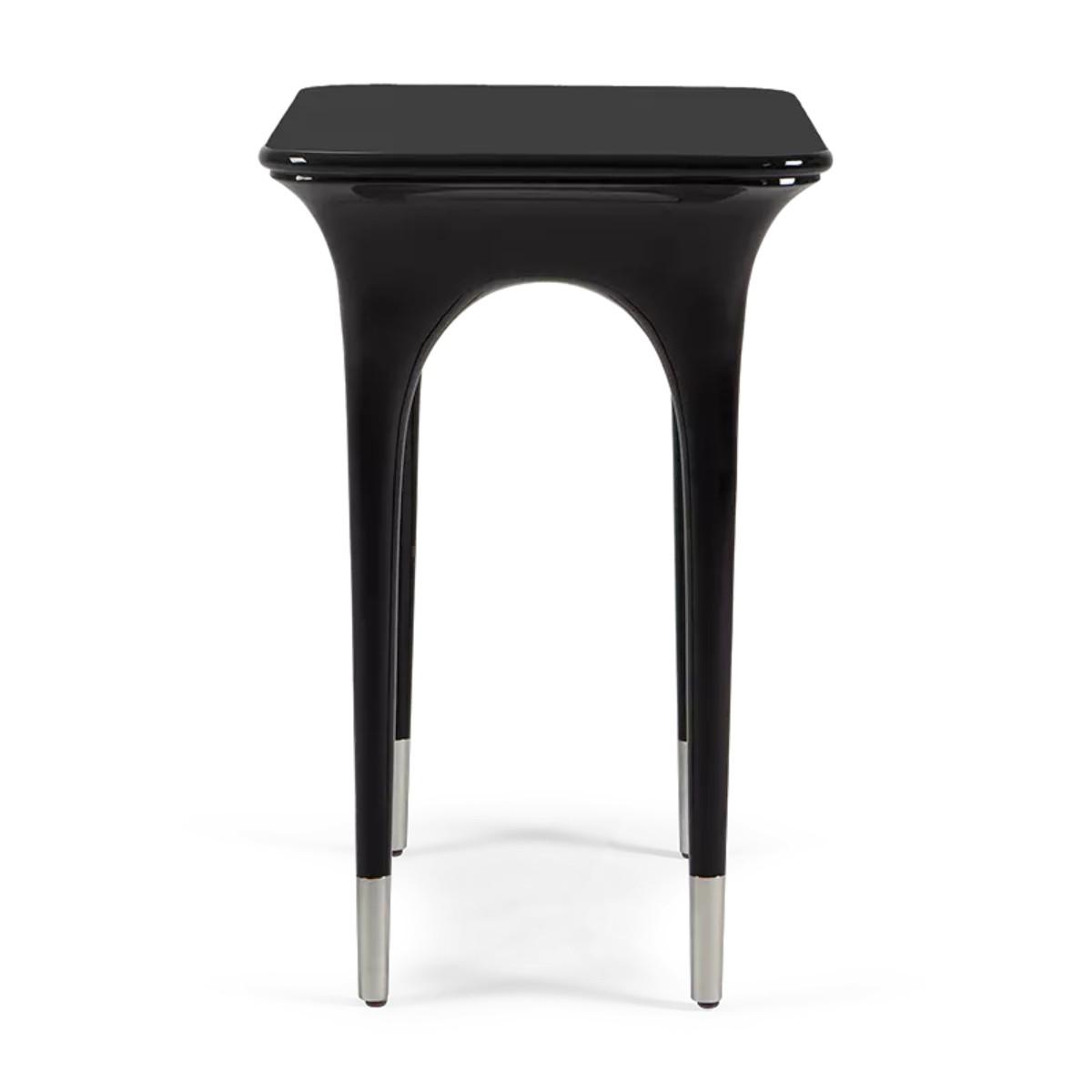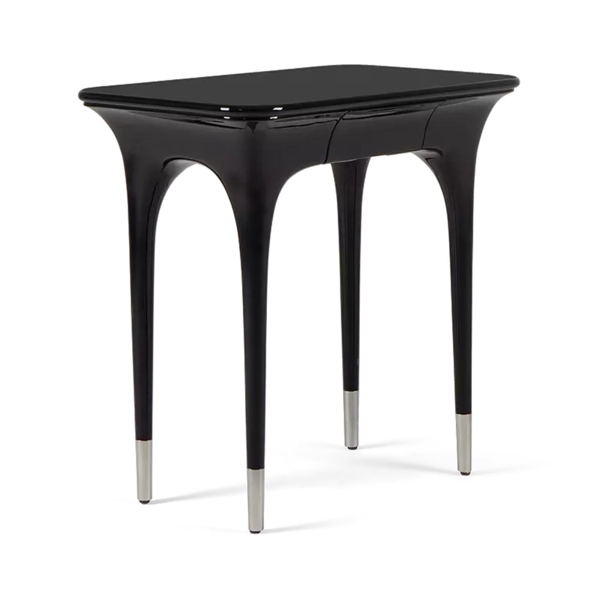 With the ultimate in elegance, this delightful side table is expertly hand carved with tall spindly brushed nickel finish tipped legs swooping into curves and a seamless tabletop with curved sides. A truly beautiful addition to any style of setting.