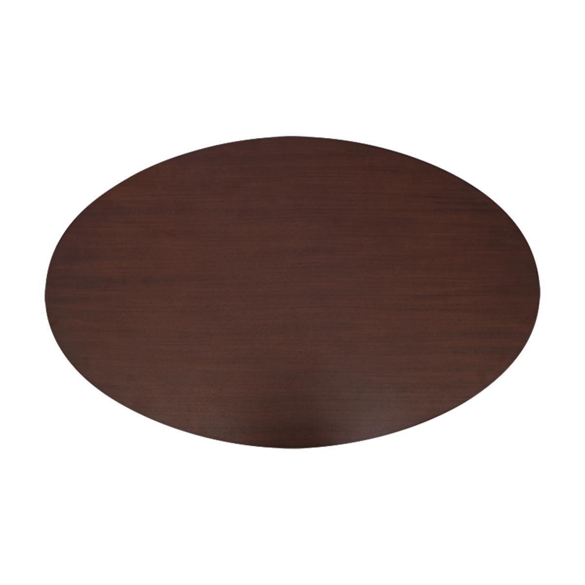 Architecturally inspired with a burnished winged geometric metal base and an oval top, this table is a contemporary styled classic.
