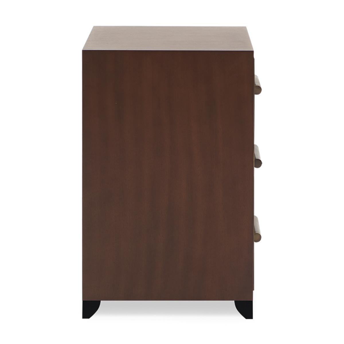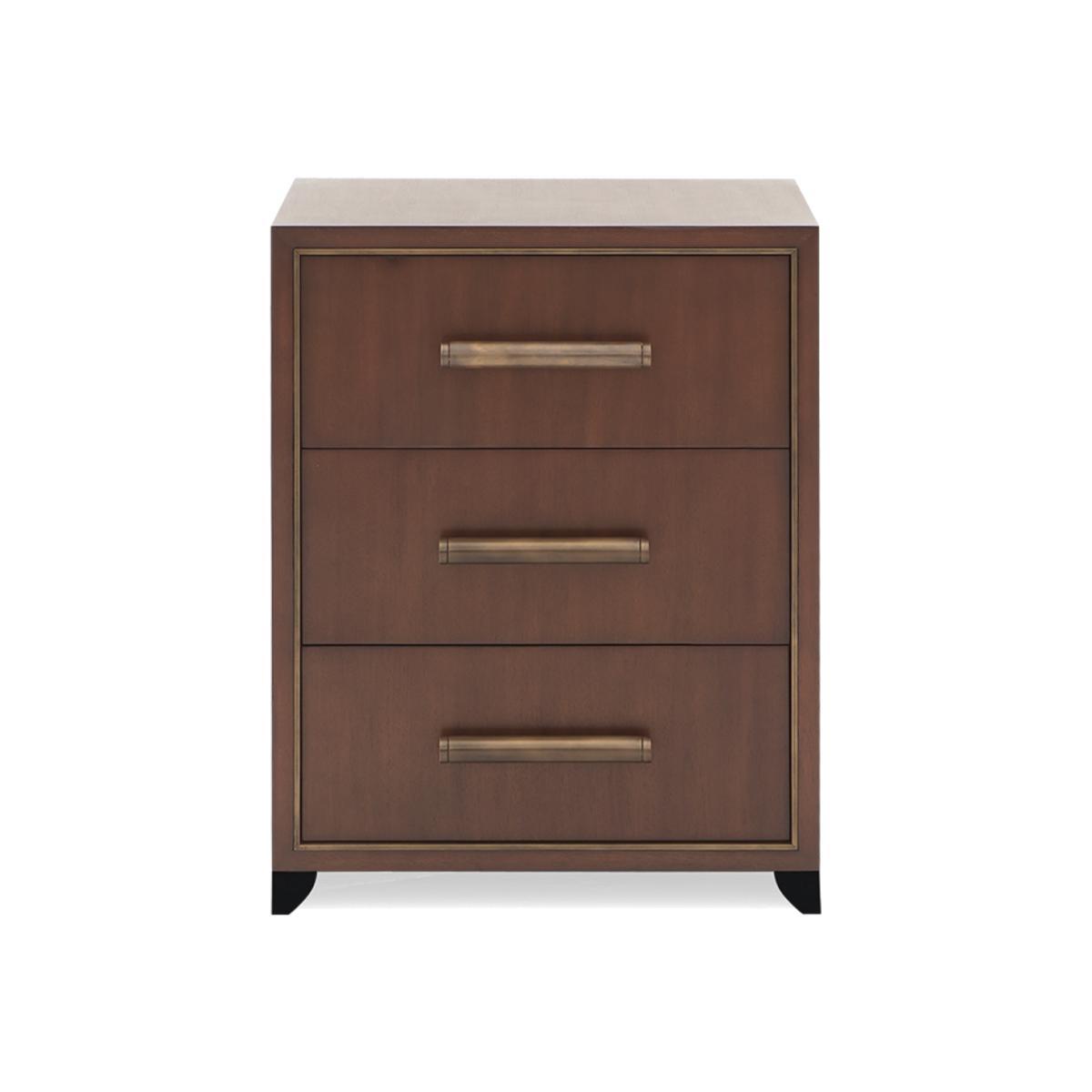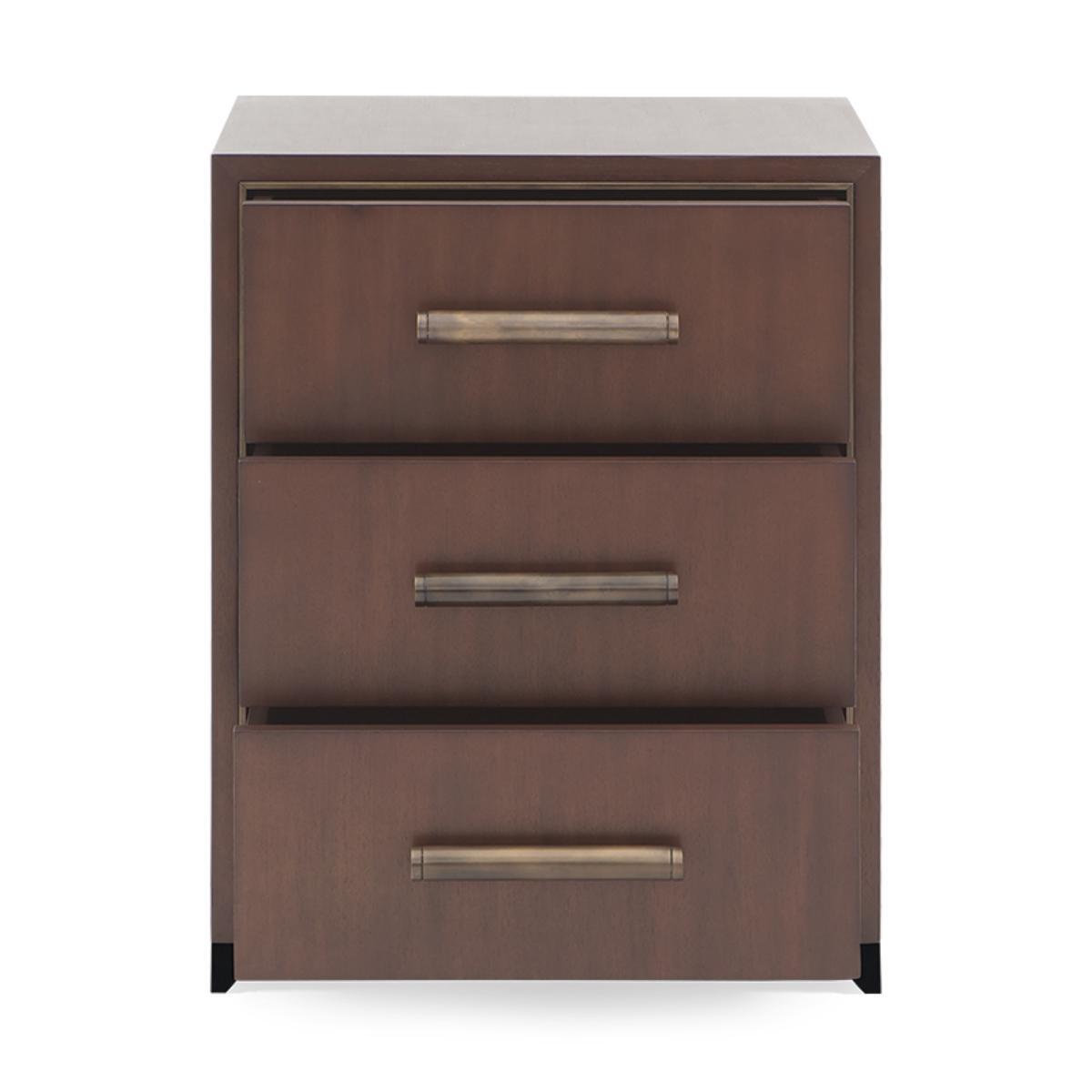 With an early 20th century Modernist influence, this understated side cabinet features 3 drawers with wooden handles in antique brass finishing.