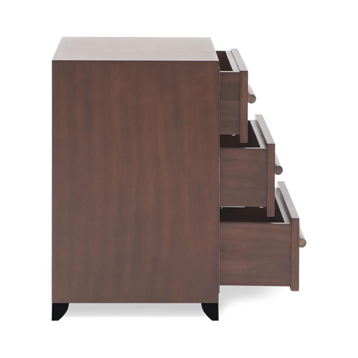 I’m a fan of the Danese bedside cabinet for its clean, box-frame silhouette and warm walnut finish, punctuated by slim brass handles that lift the overall look without overpowering. Its compact proportions make it a strong choice for both contemporary and transitional schemes, especially as a bedside or hallway piece where hidden storage is essential. Styling tip: top it with a simple table lamp and a small stack of books or a ceramic vase to keep the surface uncluttered. Pair it with soft neutral linens or muted jewel-tone accents to let the wood grain and metal details take centre stage.