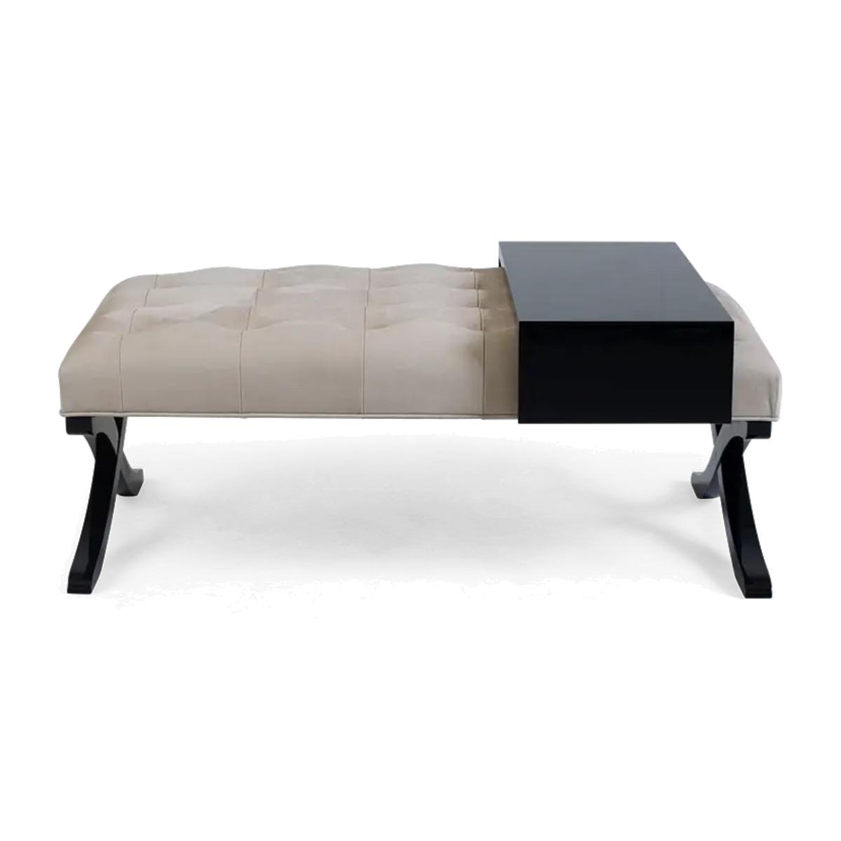 I’m a fan of this “French bench” for its mix of supple, neutral-tone upholstery and the contrasting black base - it brings a neat, tailored look without feeling fussy. It works equally well in a contemporary hallway as a dressing-room seating option or at the foot of a bed in a minimalist, Scandi-inspired scheme. To style it, pair with a slim console mirror above and layer in natural-fibre rugs or a textured throw for warmth. In a living area you can use the built-in side table for a small lamp or a stack of art books, keeping the rest of the space clean and uncluttered so the bench remains the focal point.