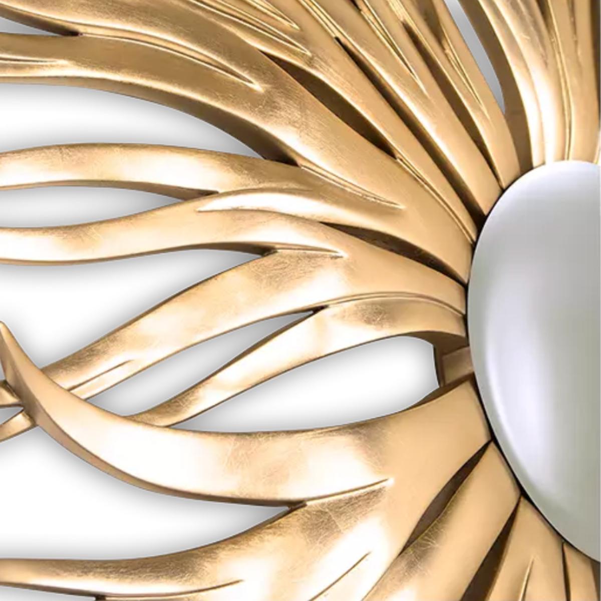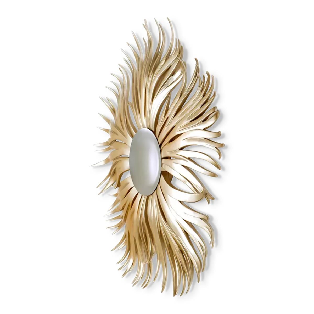 This mirror is a fabulous statement piece that combines sculptural design with functionality. I love how it adds a touch of contemporary glamour, making it a focal point in any room. It works particularly well in luxe interiors or modern schemes, especially when paired with neutral tones or minimalistic decor to let its intricate metallic detailing shine. For practical styling, consider placing it above a console or in a living room corner where it can reflect natural light and create a sense of space. When styling around it, keep surrounding accessories streamlined so the mirror remains the standout element. Its bold form makes it ideal for adding personality to entryways, bedrooms, or even a statement wall in a lounge.