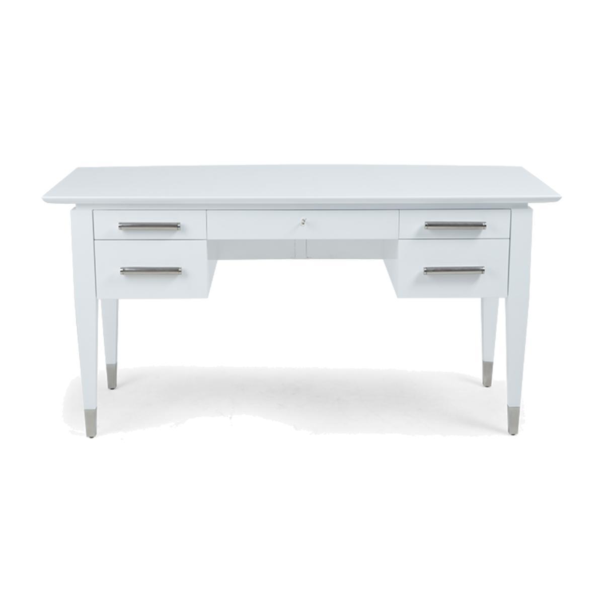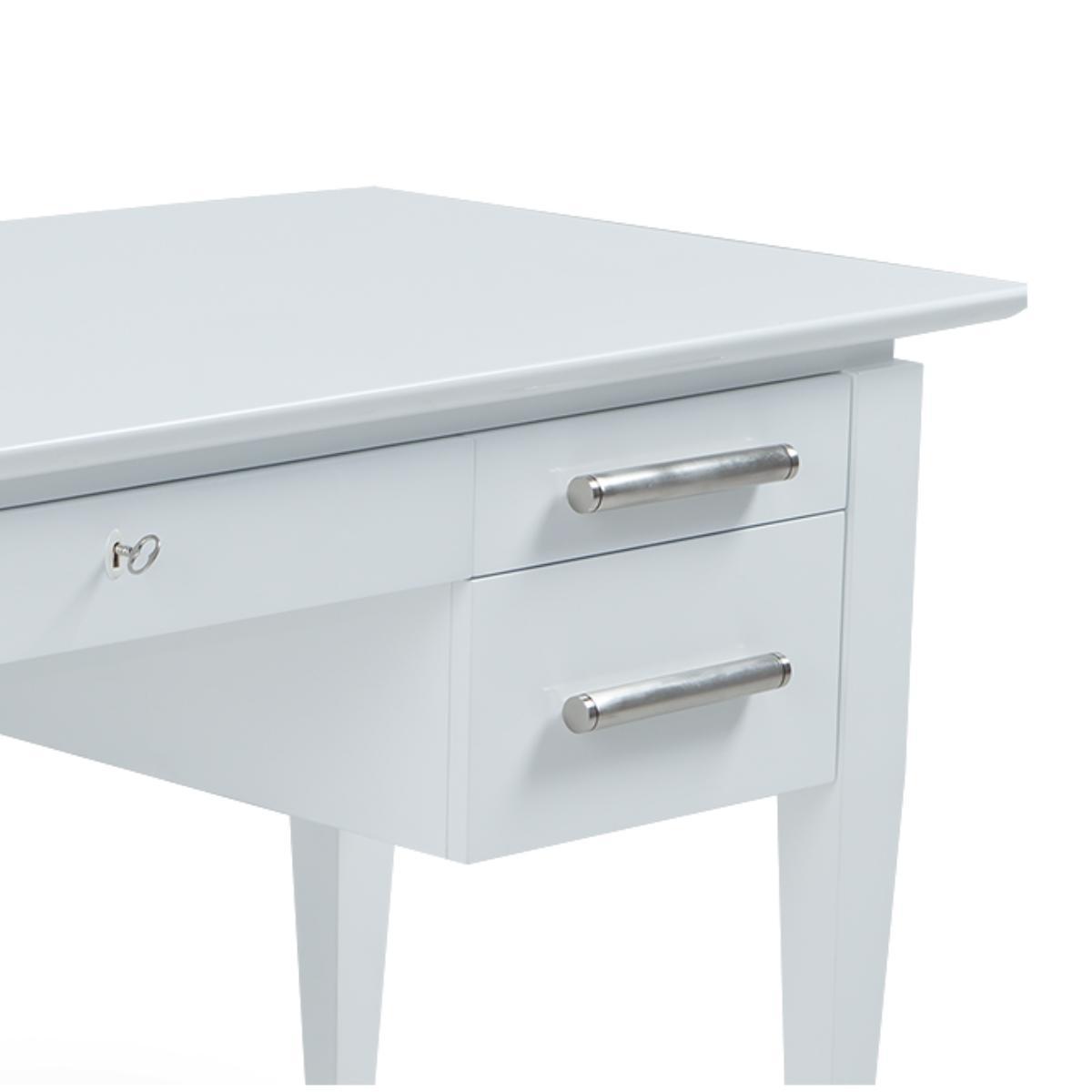 I’m drawn to this Mon desk for its clean lines and subtle gloss finish, which suit both contemporary and minimalist home offices. The tapered legs with silver ferrules give it a refined edge, so it works equally well in a neutral-scheme study or a more graphic, monochrome setting. For styling, keep the desktop uncluttered: pair a slim brass or matte-black lamp with a neat stack of design books, a small tray for stationery and a single potted plant. An ergonomic, low-profile chair in leather or mesh will complete the look without overwhelming its streamlined silhouette.