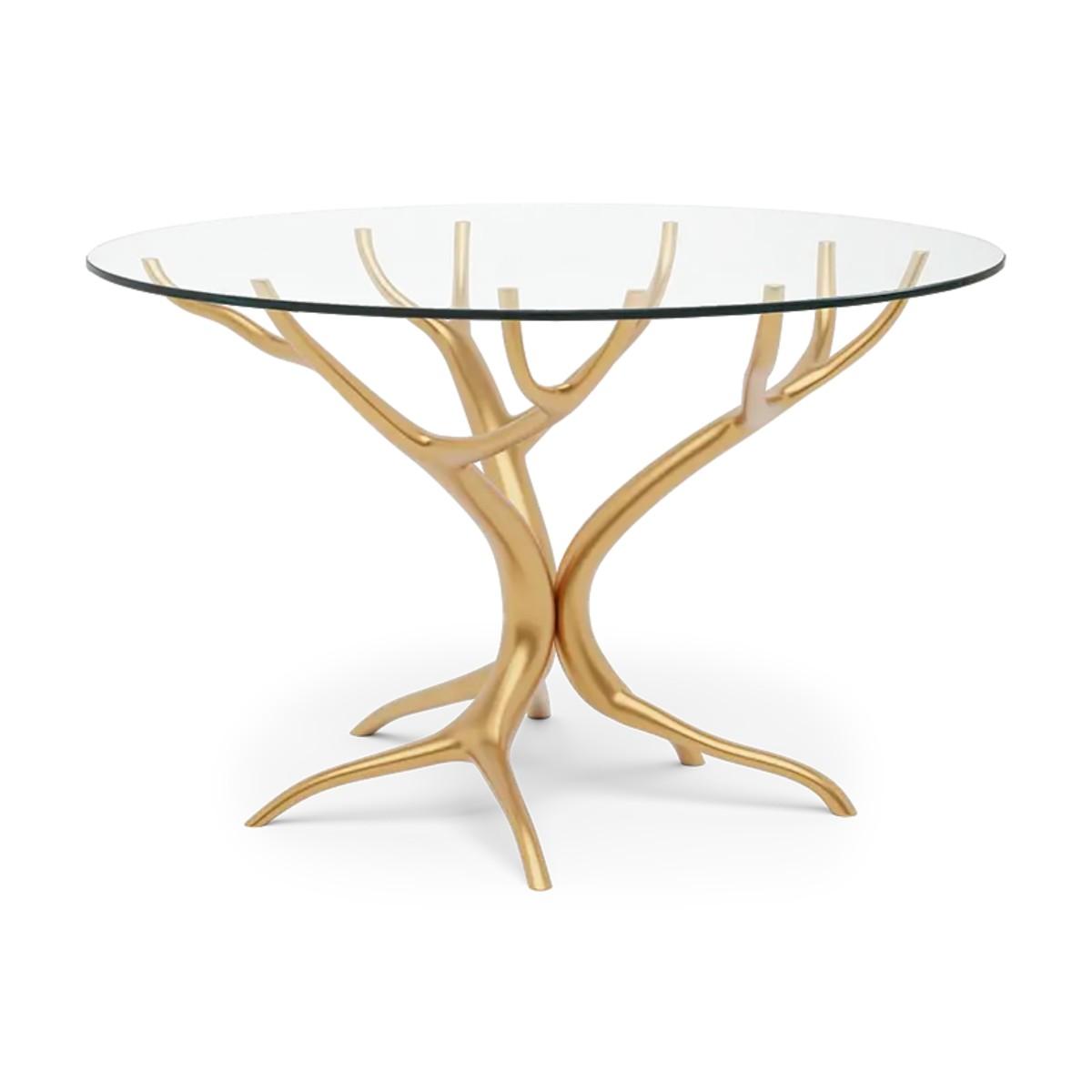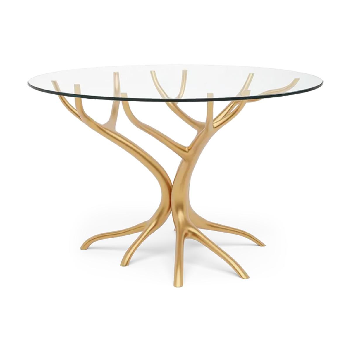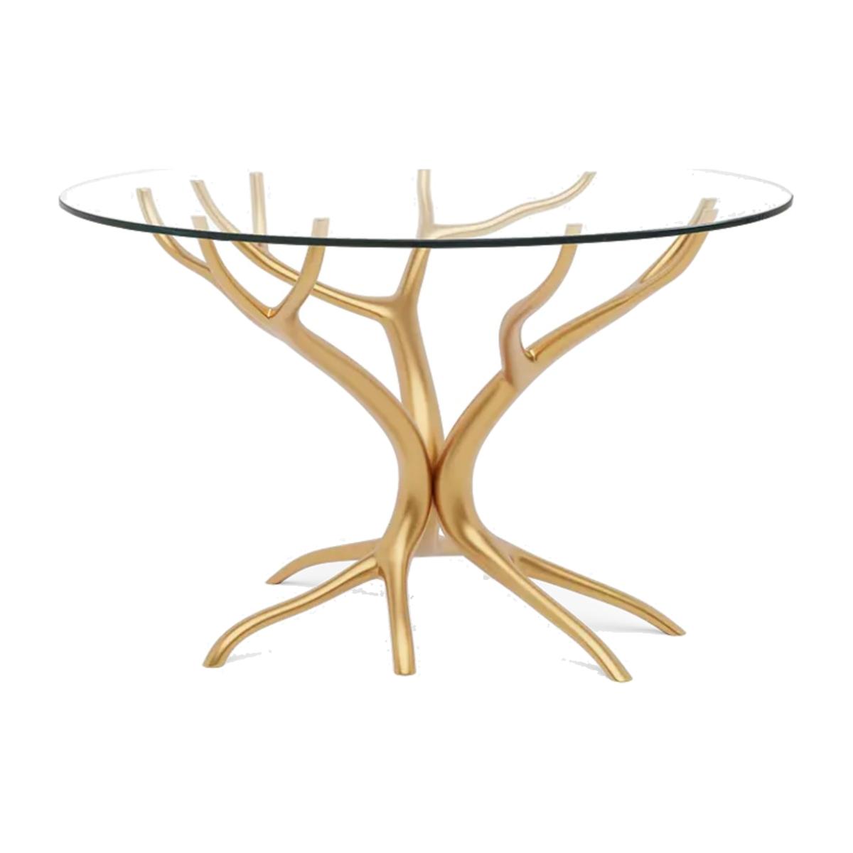 With gracefully stretching hand carved wood ‘branches’, this exquisite center or dining table is topped with clear tempered glass to show the tree-style pattern below to best effect. A truly beautiful statement piece for any dining or living room setting.