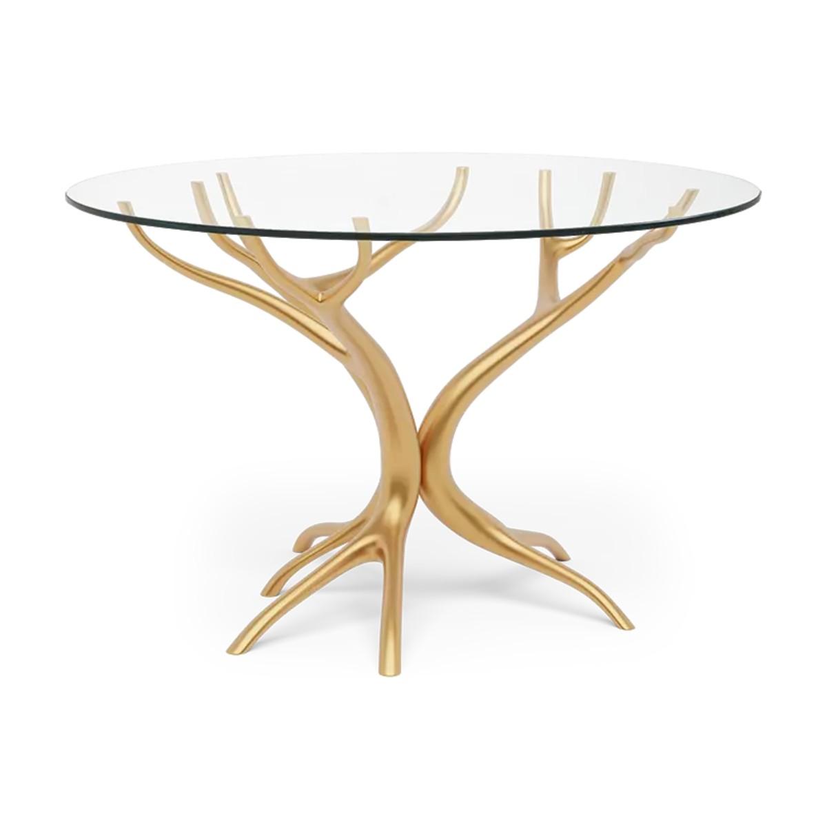 I love the sculptural gold base of the Olivier table for adding impact without feeling heavy. The transparent glass top keeps sight-lines open, making it equally at home in a modern city apartment or a more traditional home with art-deco accents. Styling tip: choose simple upholstered chairs in neutral tones, layer a natural-fibre rug underneath and limit tabletop accessories to a single sculptural vase or bowl. You can also pick out the gold finish elsewhere - in a mirror frame or light fitting - to tie the scheme together.
