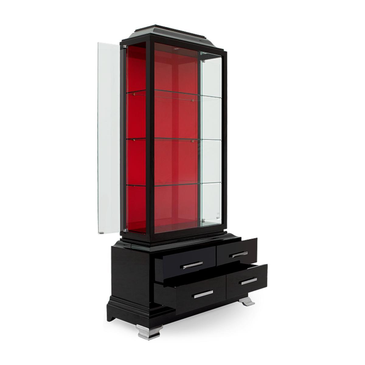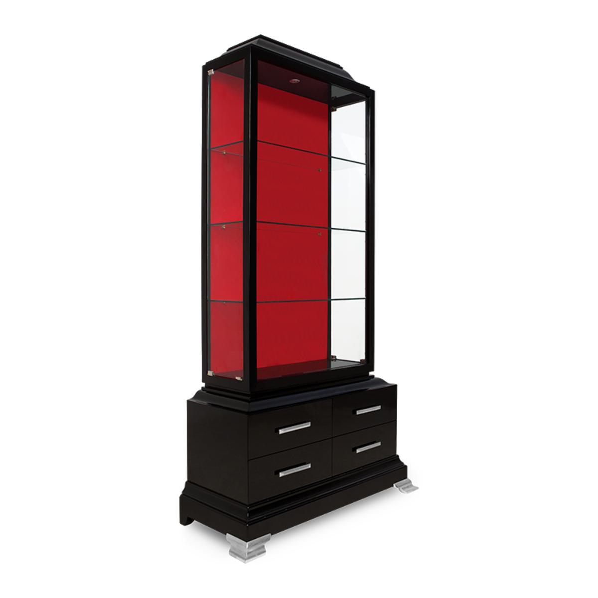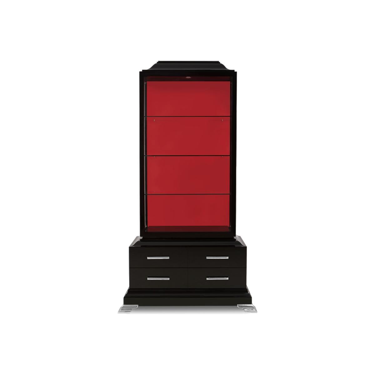 I’m a fan of the San Marino cabinet for its clean lines and the way the deep lacquered frame contrasts with its vibrant interior - it feels both curated and bold. It slots effortlessly into Art Deco, modern classic or eclectic schemes, providing a strong focal point without overpowering the room. To style, install subtle LED strips inside to bring out the red backing, then mix a few sculptural vases or heirloom ceramics with slender coffee-table books. Keep pieces at varying heights to draw the eye through the cabinet, and leave the top surface uncluttered or use just one statement object - a slim lamp or a minimal tray works well.
