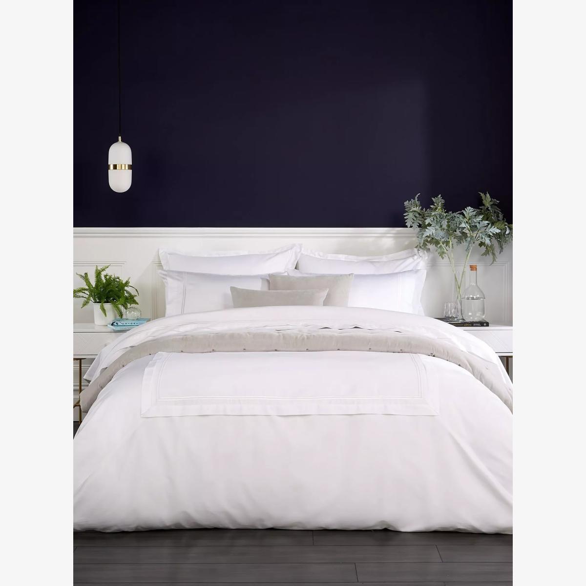 Coniston bed linen offers luxurious comfort and elegance in a classic cotton sateen. Made from premium fabric, it features a glossy finish and a classic Oxford edge with a crisp embroidered border. Perfect for a coordinated, layered hotel linen look, it exudes laid back contemporary luxury. The single set contains 1x Oxford pillowcase. All other sizes contain 2x Oxford pillowcases. Standard pillowcases are also available to buy separately, in pairs. Bedding sizes To fit duvet/pillow size (cm) Oxford pillowcase, L75 x W50cm (excluding trim) Standard pillowcase, L75 x W50cm Single duvet cover, L200 x W135cm Double duvet cover, L200 x W200cm King duvet cover, L220 x W225cm Super king duvet cover, L220 x W260cm