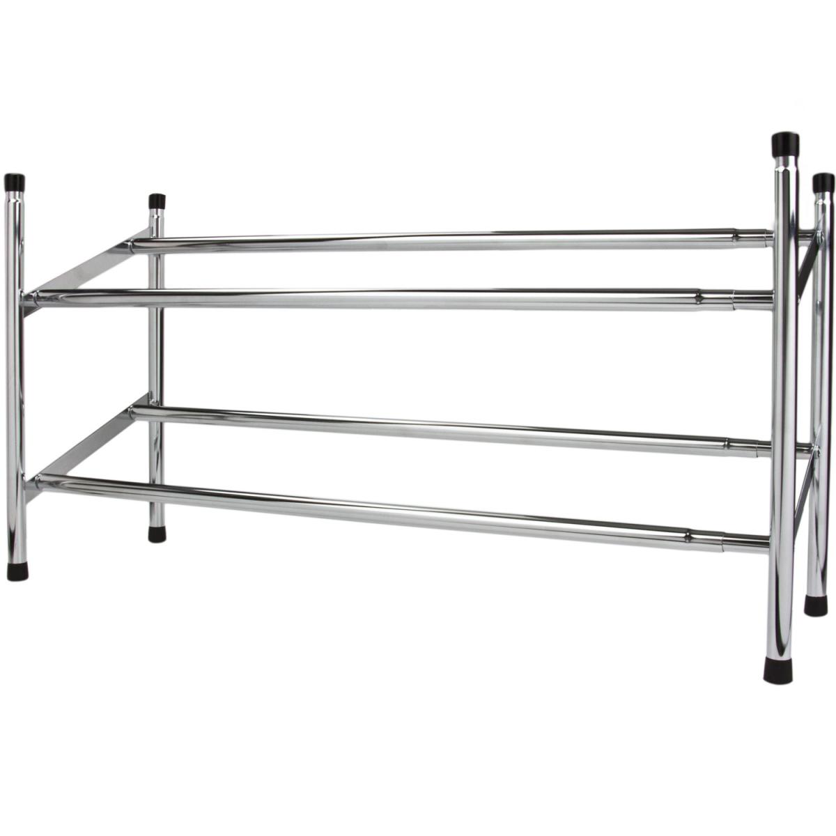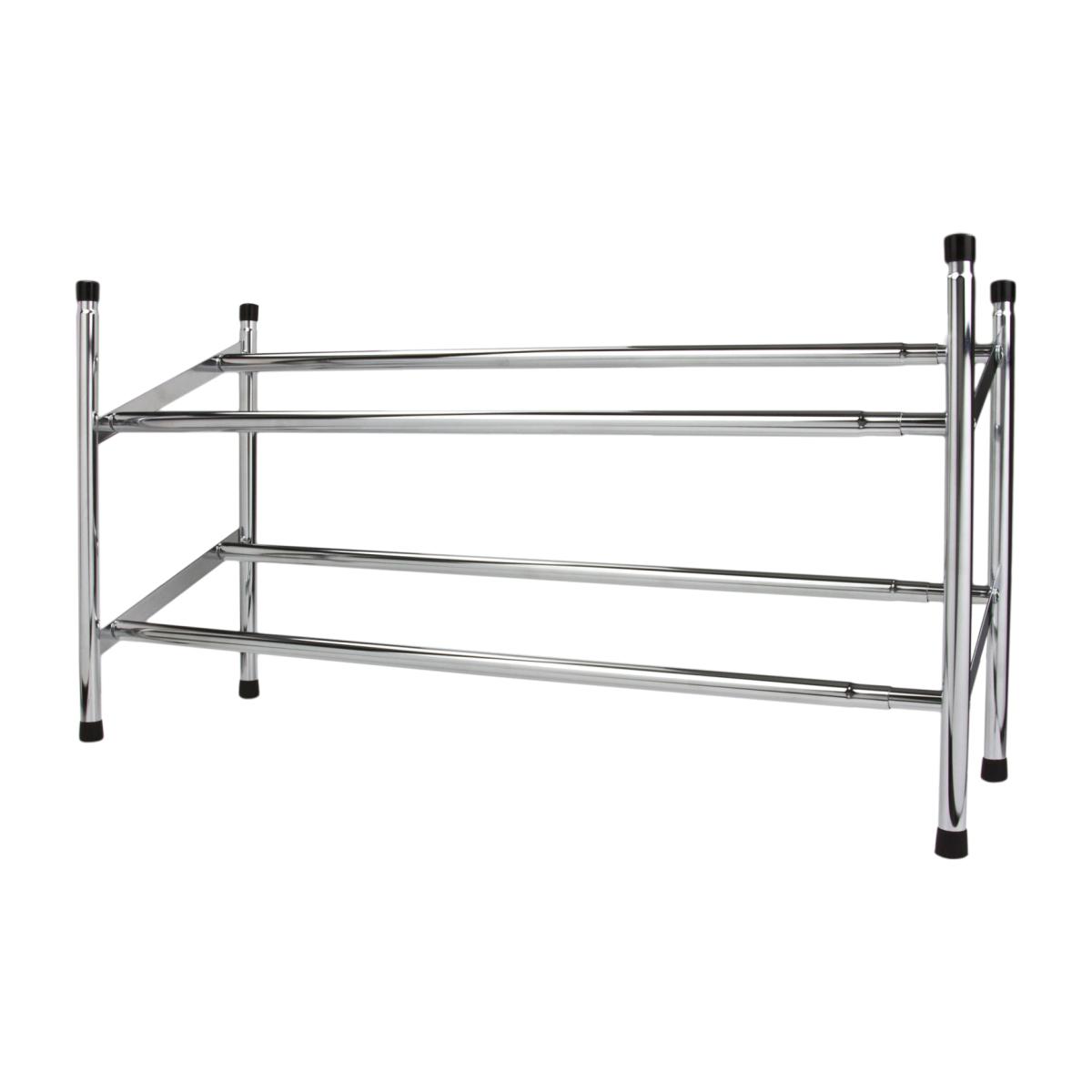 Keep your hallway tidy and your floors clean with this Chrome 2 Tier Extending Shoe Rack. This elegant, chrome rack is the perfect place to keep your shoes neat and tidy while making sure you always have access to your favourite footwear. This rack extends from between 63 and 125 centimetres, allowing it to fit perfectly into any home. With space for boots and wellies on the top tier and a bottom tier that makes the perfect home for smaller shoes, pumps and trainers, this is an essential addition to any home.