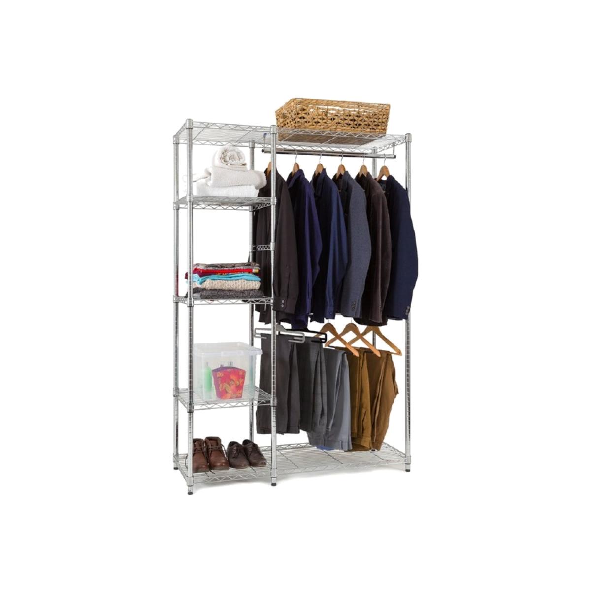 Chrome 5 Tier Clothes Rail With Storage Shelves 1818mm H x 1203mm W x 457mm D - Chrome