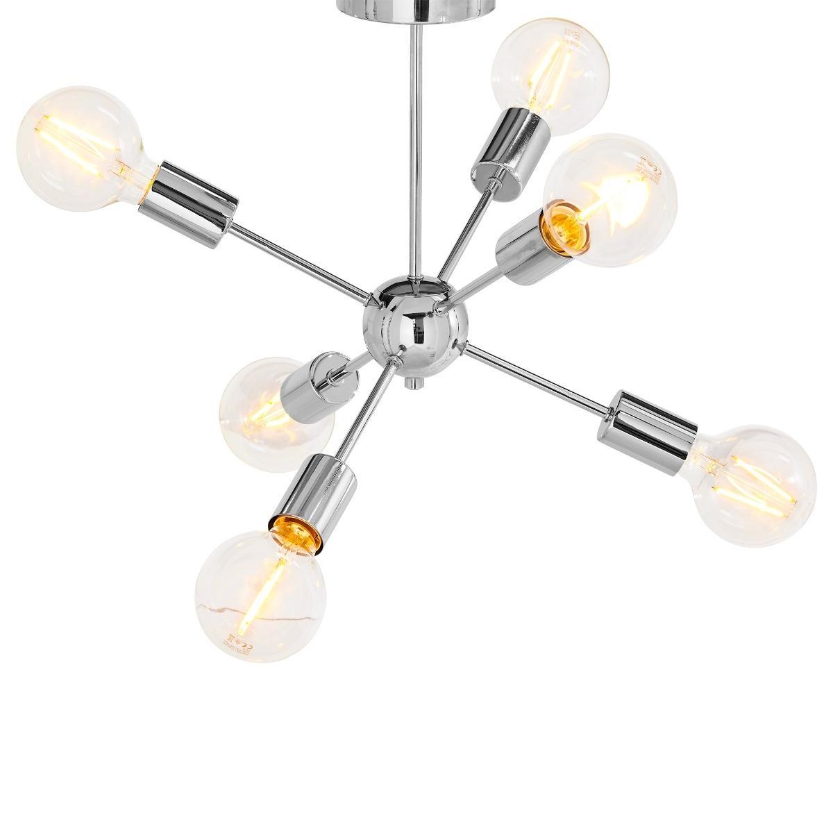 Design. A contemporary light fixture which will add a homely glow to your dining room, hallyway, or living room. The Chrome 6 Bulb Pendant is an ideal accessory for a modern home, finished in timeless chrome for a classic look and given a unique look with its display of 6 bulbs which project from the centre.