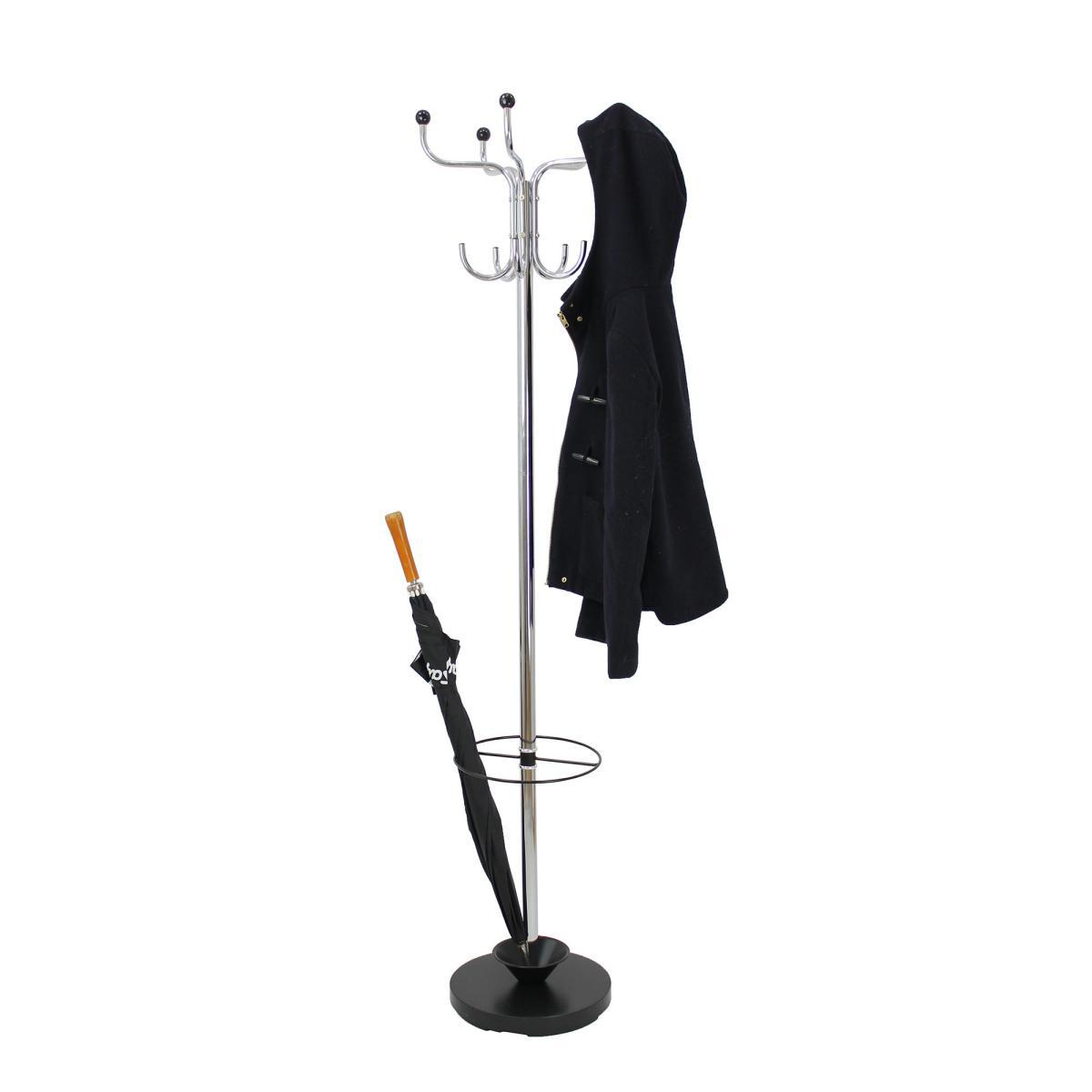 Designed with a modern chrome finish featuring black detailing, this hat and coat stand has two tier hanging and an incorporated umbrella holder. Please note, this product requires full assembly.