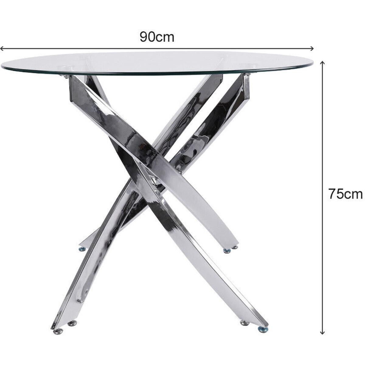 I’m a fan of this chrome round table for its ability to open up a room - the clear glass top keeps sightlines clean while the polished steel legs add just enough shine without feeling fussy. It sits comfortably in modern, industrial or even transitional kitchens and dining spaces, especially where you want to play with light or make a small area feel larger. For styling, anchor it with a low-pile rug in a neutral shade to define the zone, then choose chairs with contrasting textures - think leather or boucle - to add warmth. Keep centrepieces minimal: a single sculptural bowl or a small cluster of tinted glass vases works well without cluttering the glass surface.