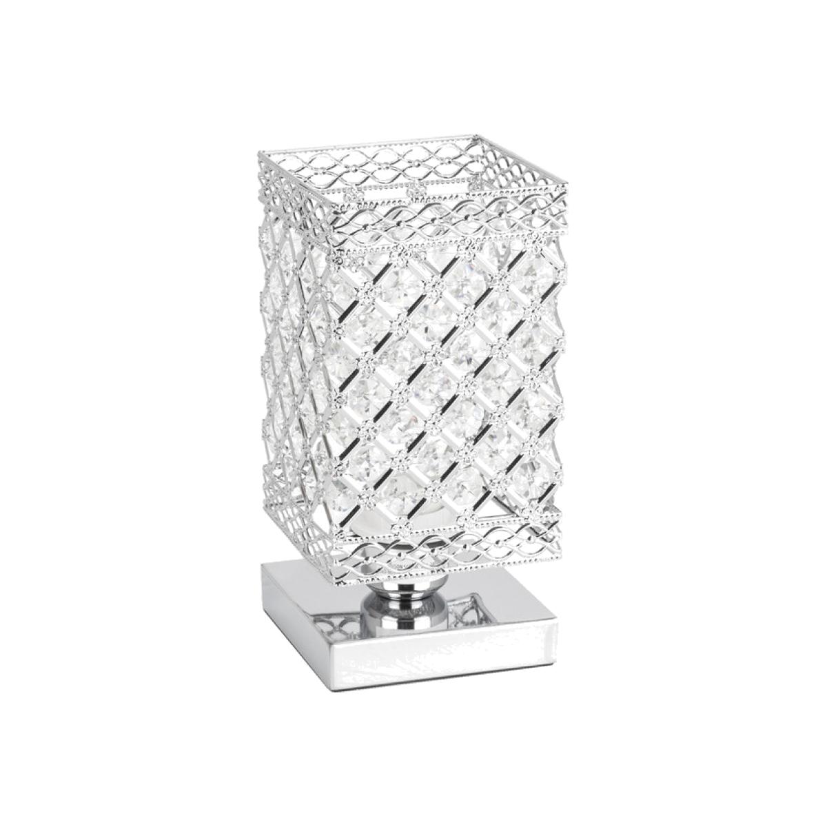 Fine detail and a high-gloss chrome finish make the Chrome Square Jewelled Table Lamp the perfect table lamp for anyone that wants to bring elegance and extravagance into their home. A wall of clear jewels encases the fitting, catching the light glistening across the room for a stunning and contemporary showpiece whether on or off.