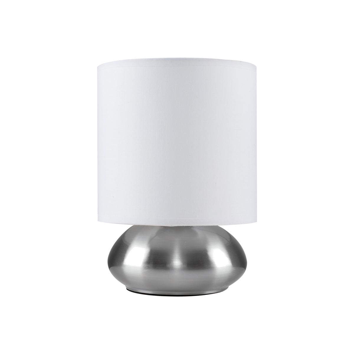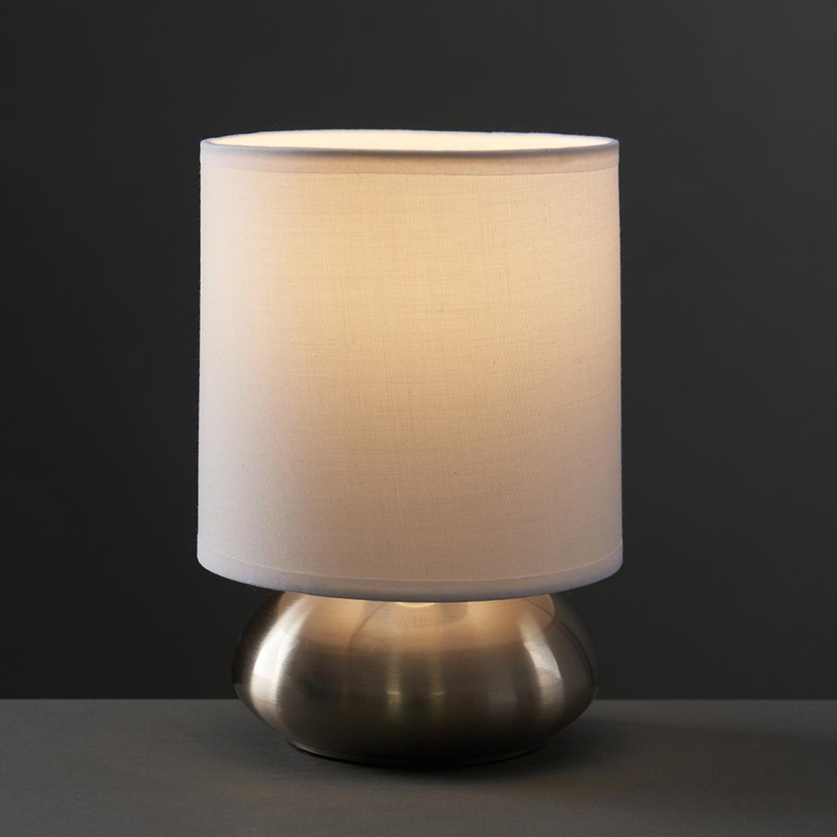 This fantastic touch table lamp with a stunning brushed chrome base is a wonderful addition to any contemporary home. The white fabric shade allows the light to be dispersed evenly throughout the room. Simply touch the metal base to turn it on. The light can be set to 4 stages, off, a low level light for mood lighting, a medium level light for general lighting and a high level light which is the brightest setting to create an intense pool of light. Table lamps are brilliant as complementary lighting and are perfect to light up dull corners. The ideal bulb for this product is a 40w SES golfball bulb - not supplied. Please Note This lamp requires dimmable bulbs. Not suitable for standard LED or energy saving bulbs.