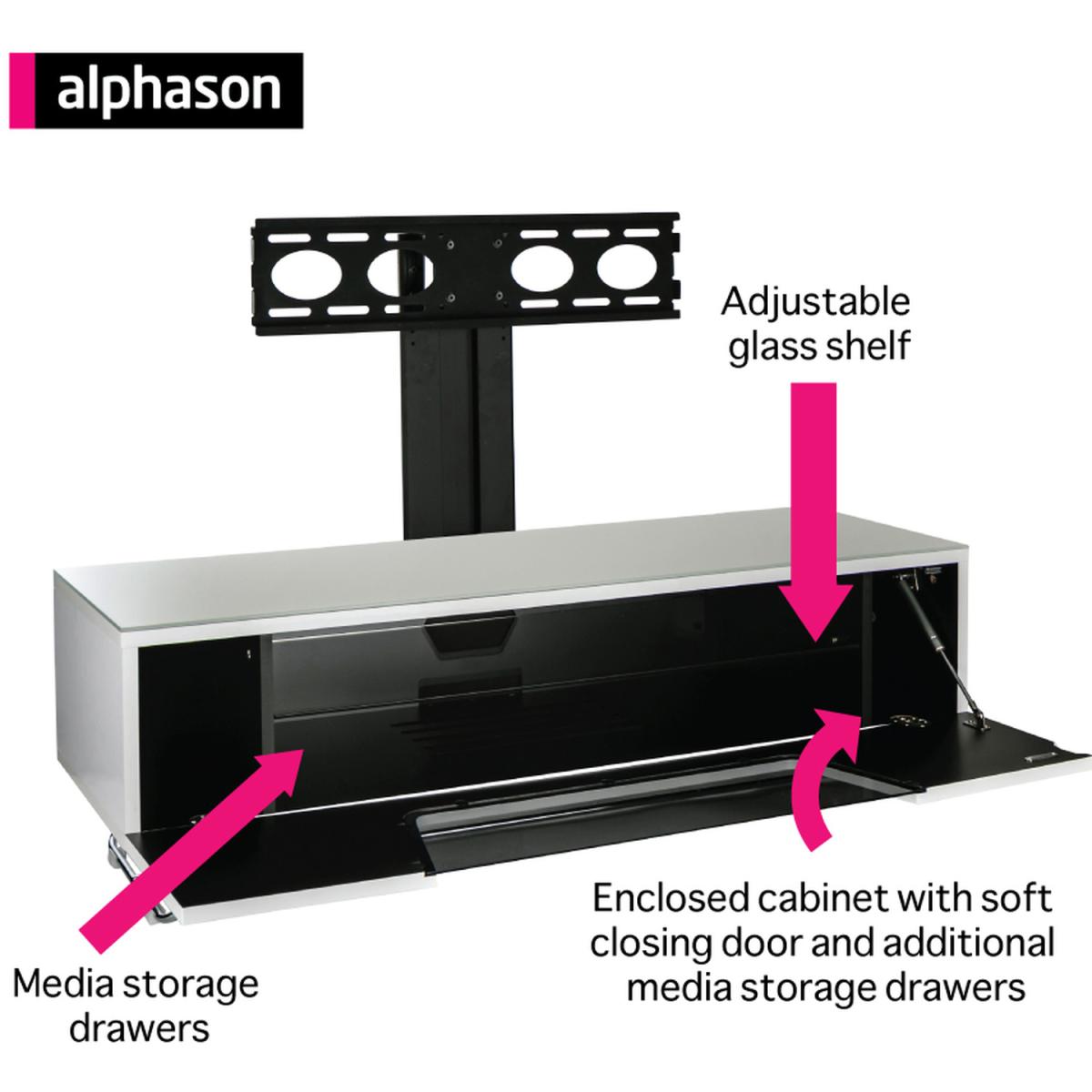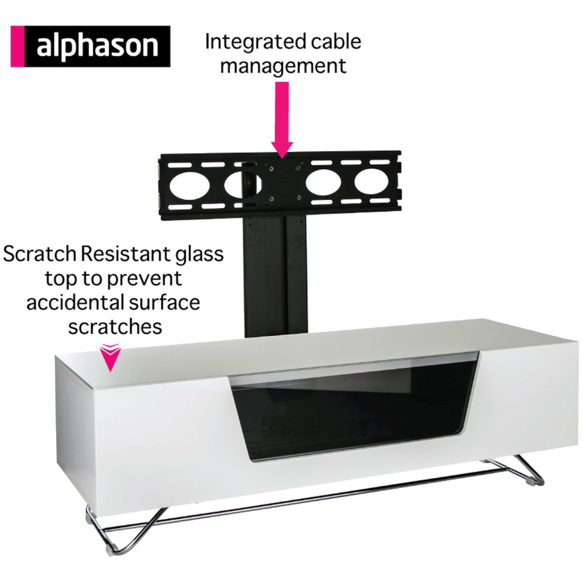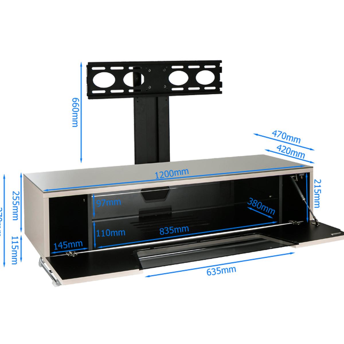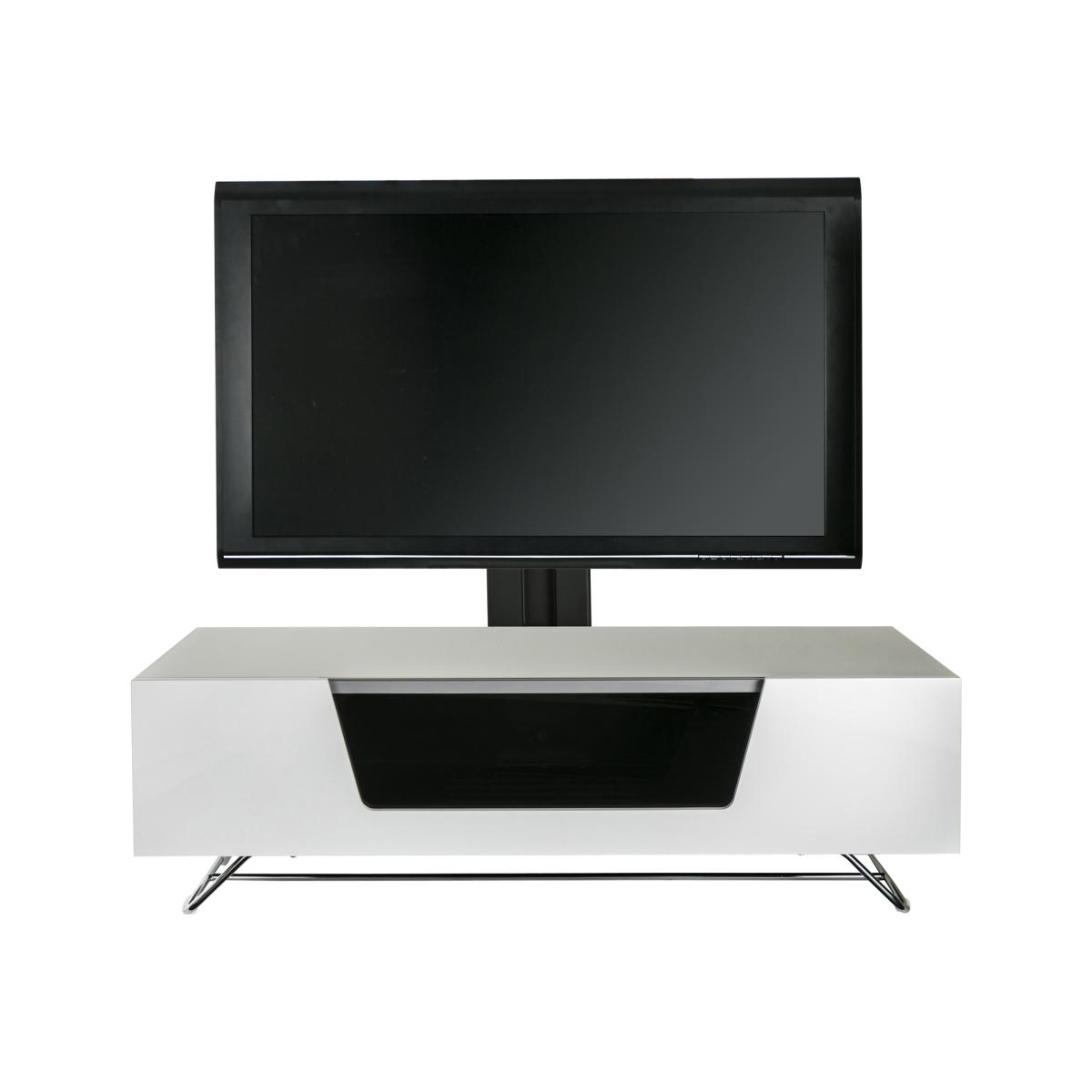 Featuring a coloured high gloss finish clad in matching glass and supported by a discreet steel frame, the Chromium range of TV stand epitomises contemporary furniture designs. The flip-down door is complete with IR friendly glass, soft opening hinge and magnetic catch, and holds a toughened glass shelf and 2 storage compartments. This model comes complete with cantilever TV bracket, to support your television above the cabinet giving a cleaner look and allowing for more storage.
